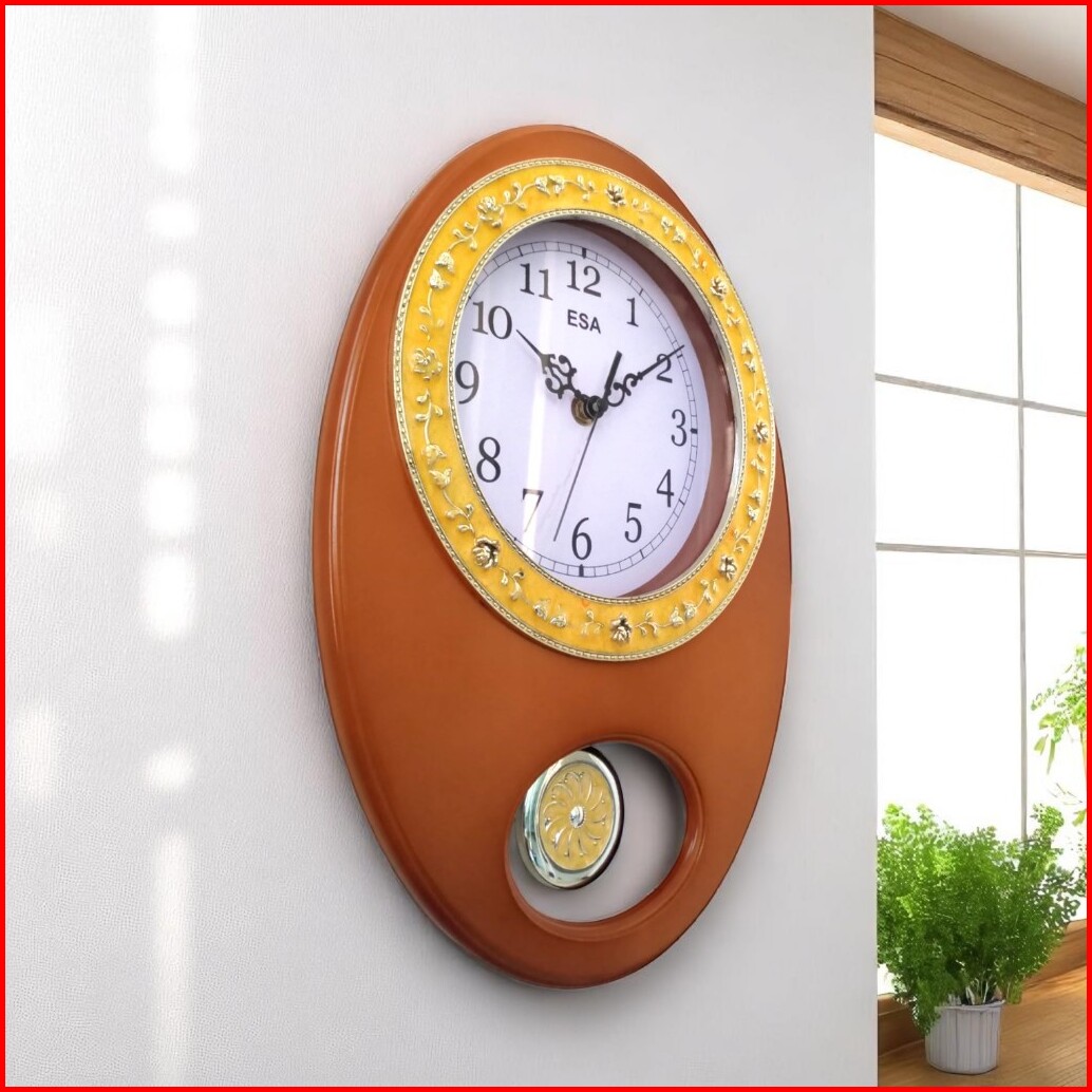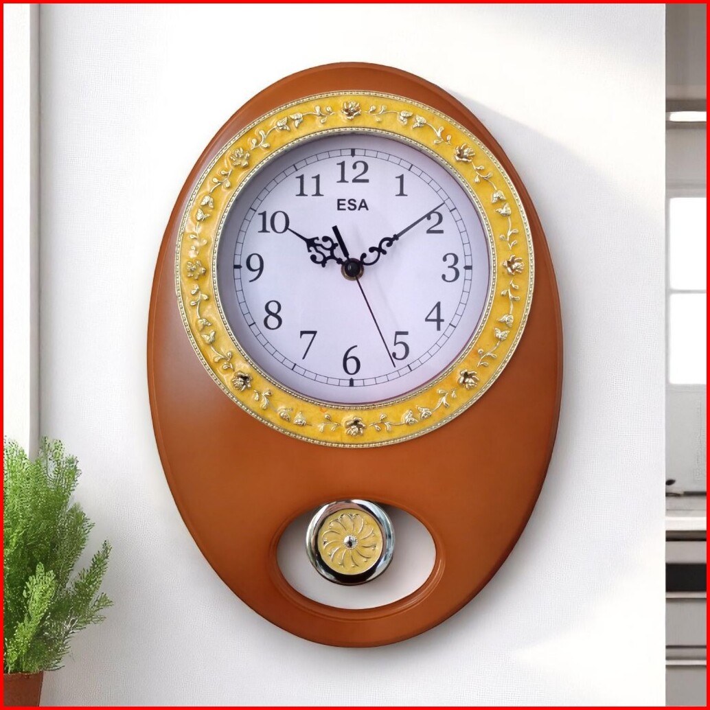 Esa Jam Dinding Melody Bandul Klasik Design Motif Kayu Free Baterai 9329
