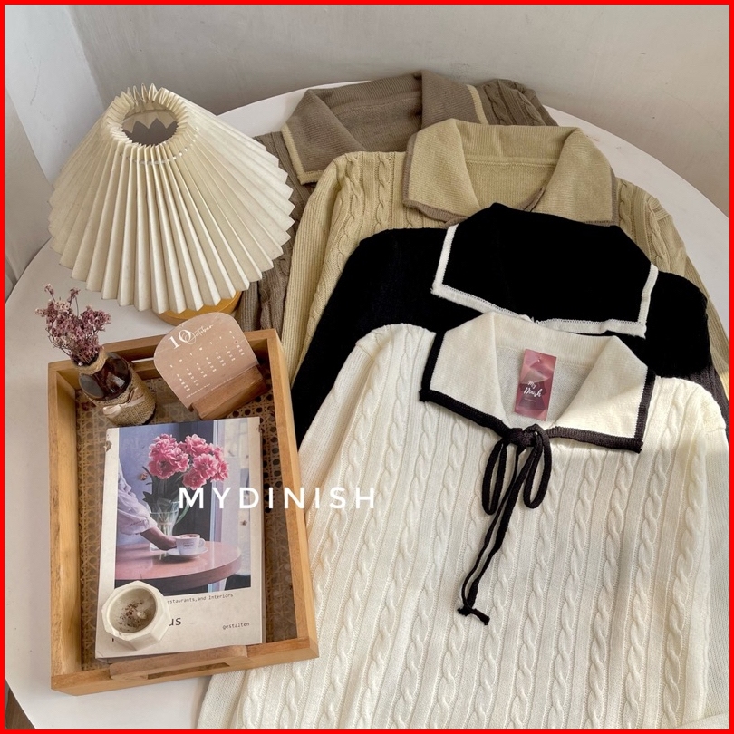 Vinia Polo Blouse - Atasan Blouse Wanita Rajut Berkerah Korean Style