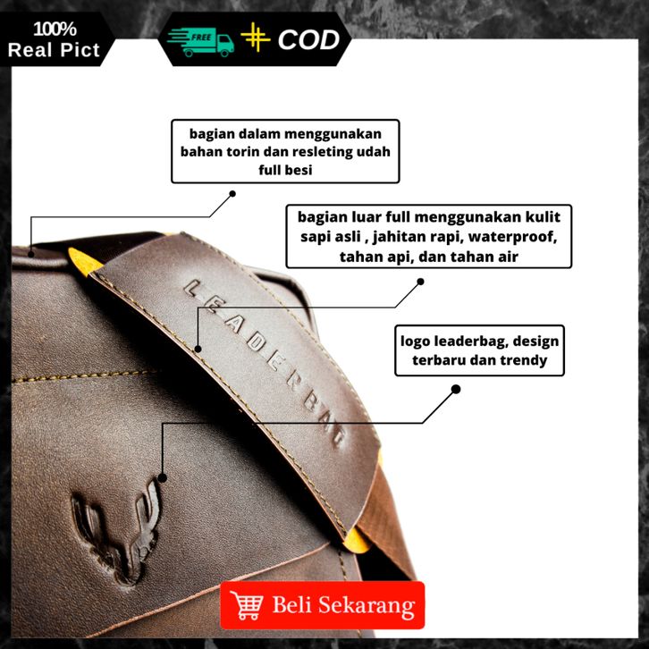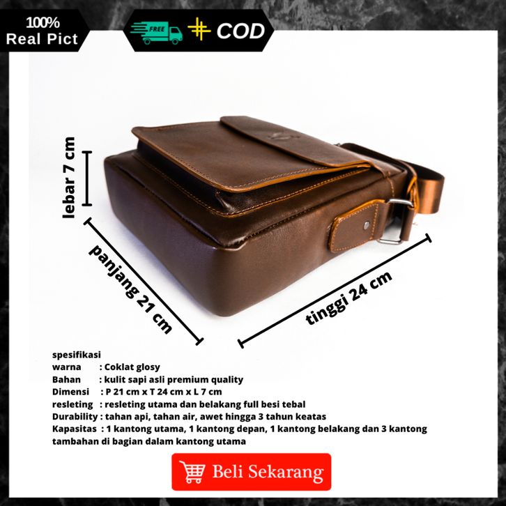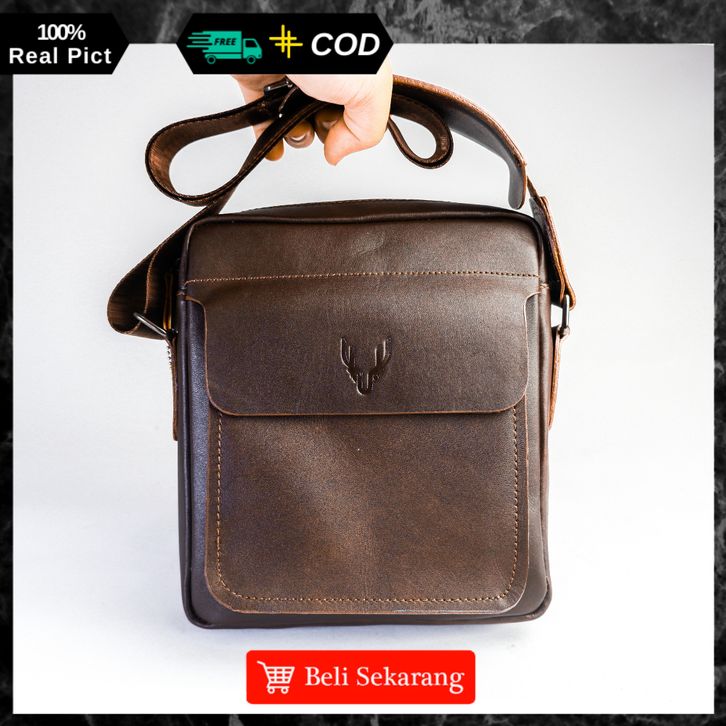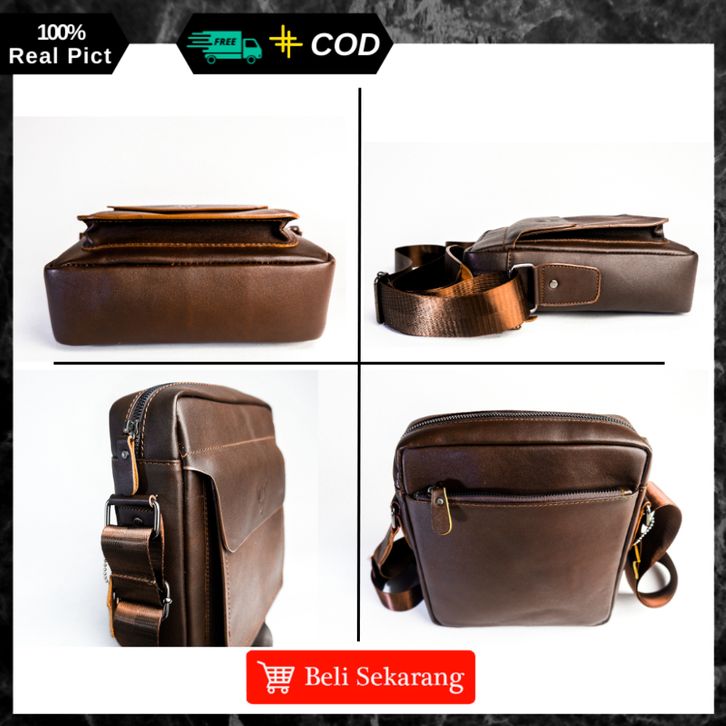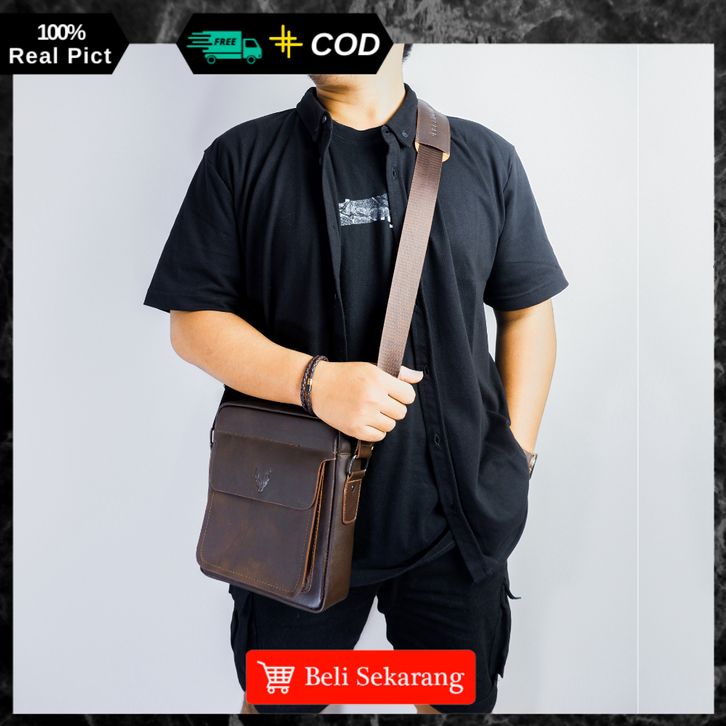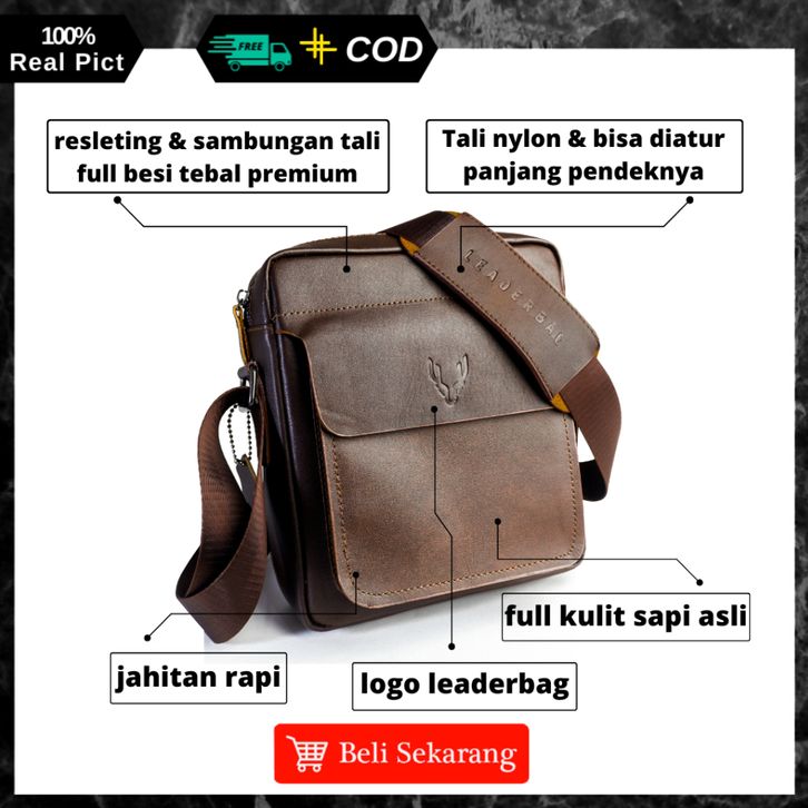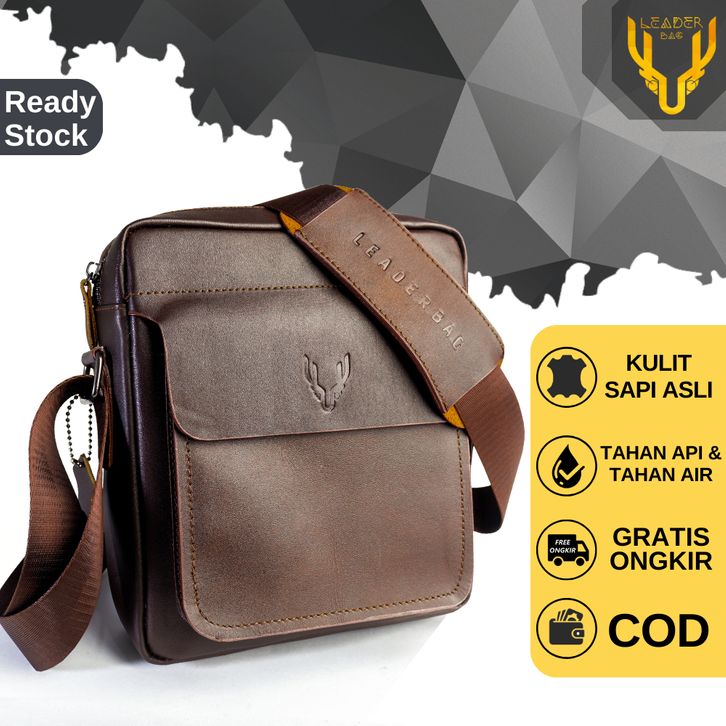 Tas Selempang Pria Kulit Sapi Asli Leaderbag Terbaru Warna Coklat Atau Tas Bahu Kulit Cowok Bisnis Keren Branded Waterpr