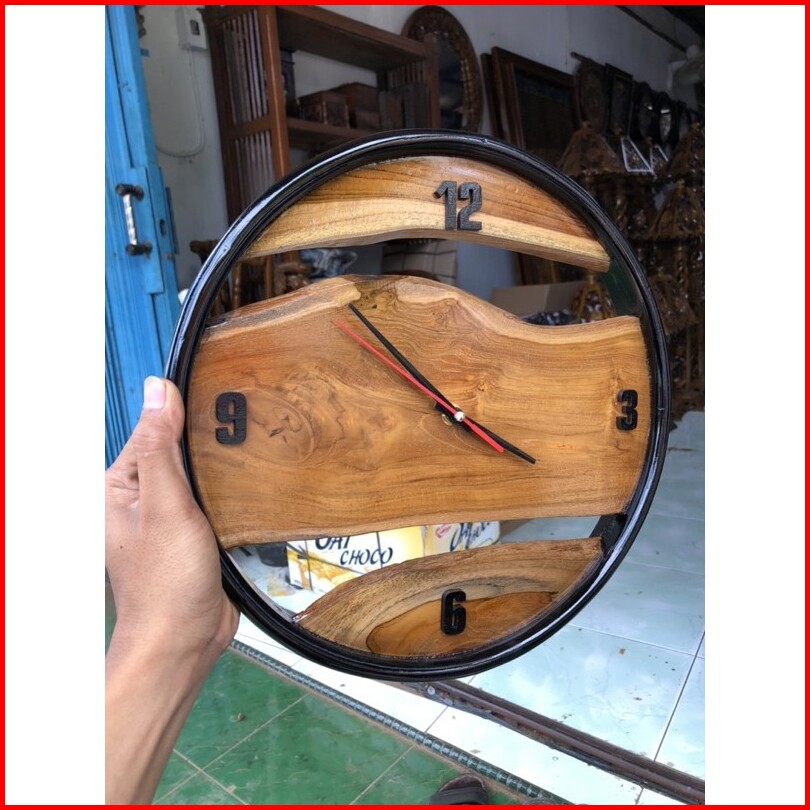 Jam Dinding Kayu Jati Unik Minimalis 35cm