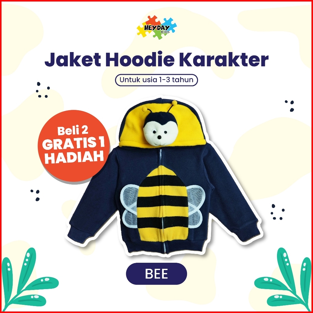 Jaket Lebah Hoodie Zipper Anak Bayi Balita Laki Laki Perempuan 1 - 3 Tahun Unisex Heyday Kids