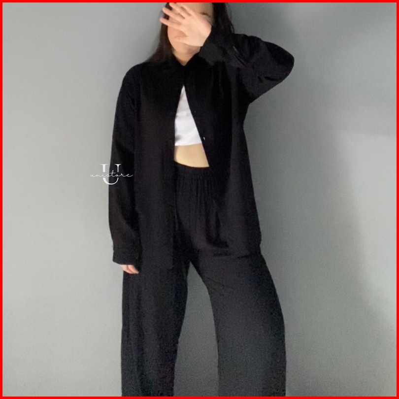 Hari Set - Rayon Shirt Set - Setelan Kemeja Rayon Lengan Panjang - Kemeja Rayon Premium - Setelan Kemeja Kulot - Kemeja