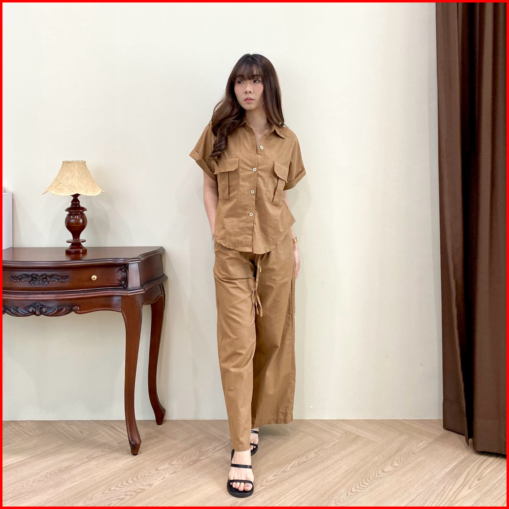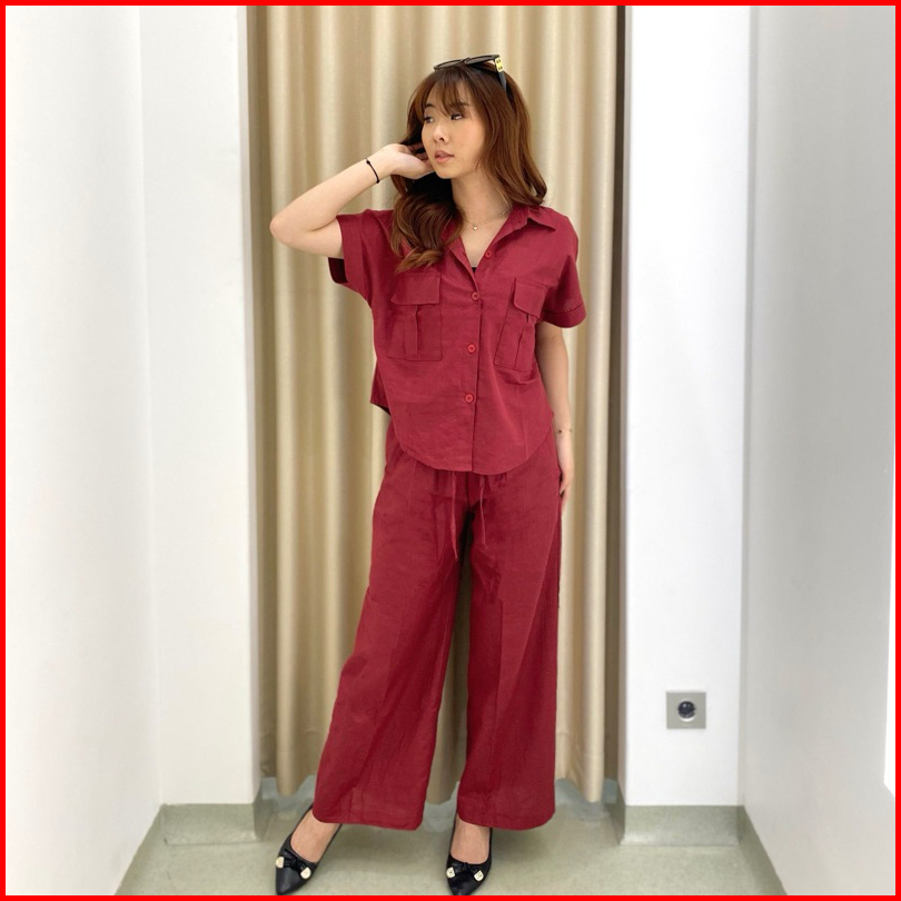 Joshin Kemeja Setelan Wanita Dewasa - Set Linen Kekinian Celana Kulot