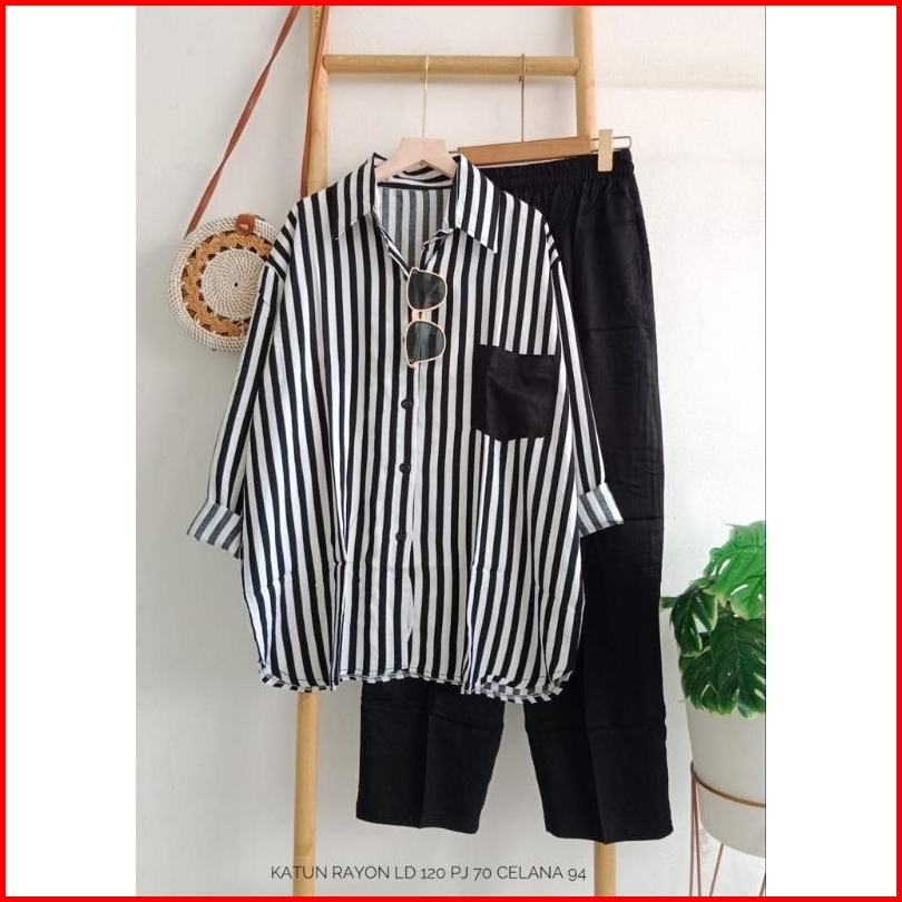 Setelan Kemeja Premium Setcel Rayon Twill Jumbo Oneset Sultan