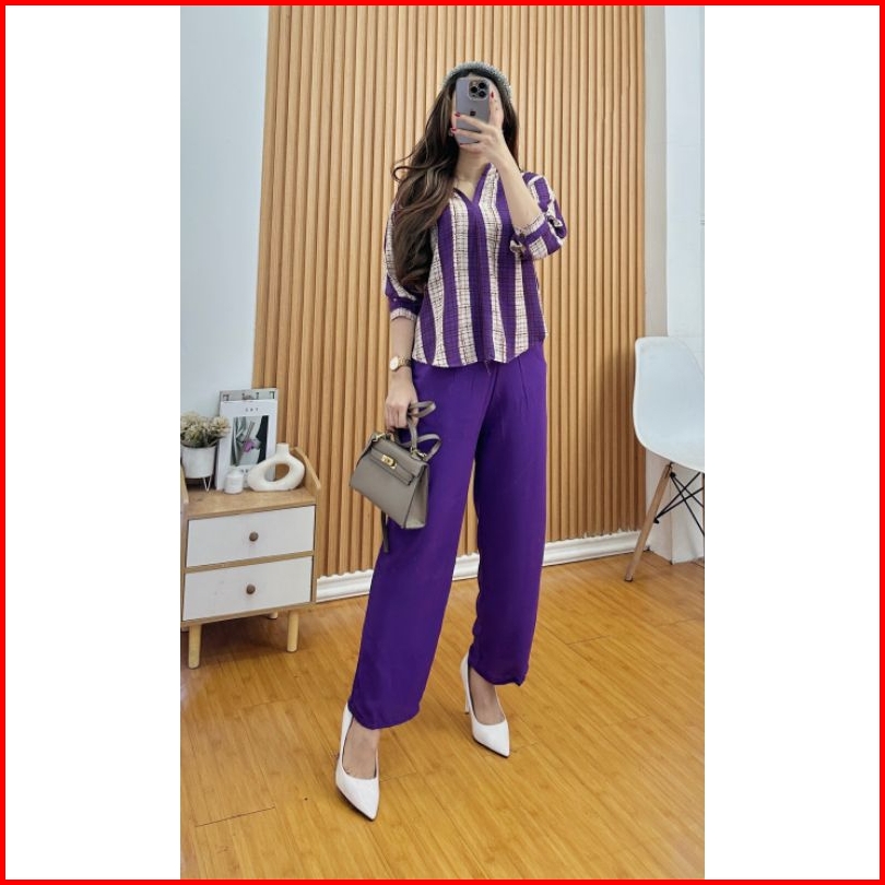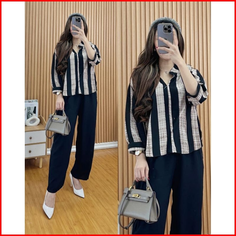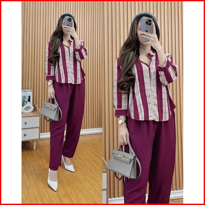 Oneset Quin Oneset Kemeja Salur Setelan Wanita Terbaru Setelan Wanita Terpopuler Oneset Termurah