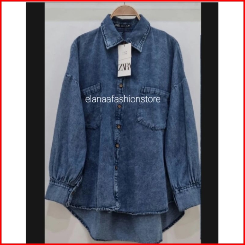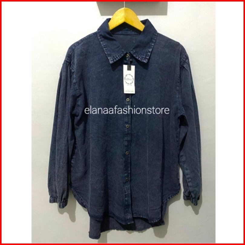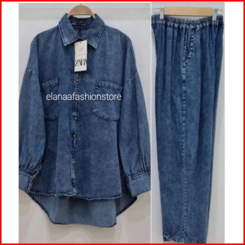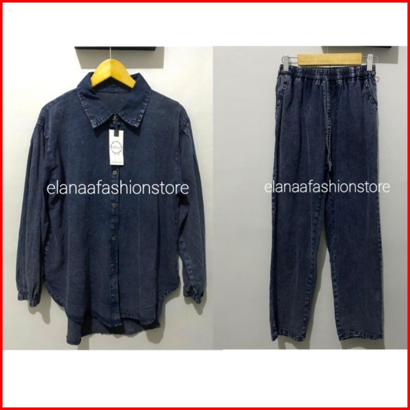 Setelan Kemeja Jeans Wanita Oversize Ootd Oneset Kemeja Jeans Premium