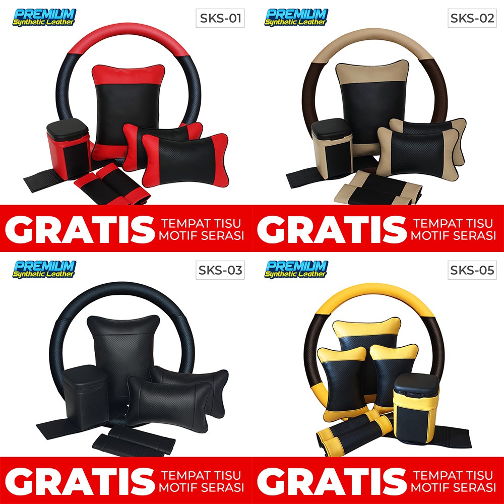 SET BANTAL MOBIL 5 IN 1 PLUS SARUNG STIR MOBIL / BANTAL HEADREST MOBIL