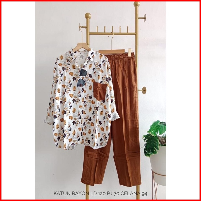 Setelan Kemeja Motif Wanita Setelan Rayon Premium Hq One Set Katun Rayon Premium Setcel Terbaru