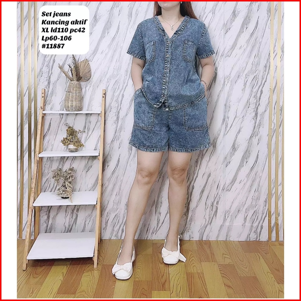 Oneset Jeans Jeans Viral Jeans Kemeja Setelan Jeans Kemeja Xl