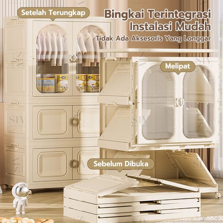 【Ekstra Besar 80cm】SIV Lemari Baju Bayi Anak Plastik Lemari Pakaian Estetik Minimalis Dengan Roda