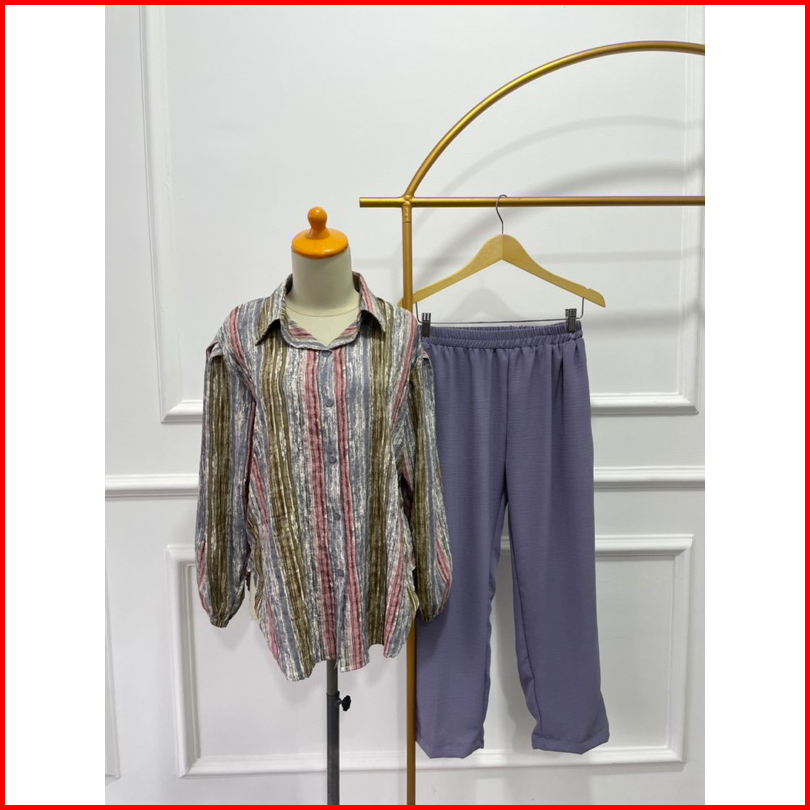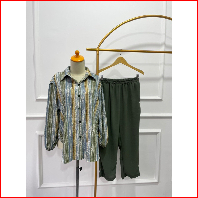 Abel Set -setcel Crinkle Motif Set Kemeja Motif Grosir Ecer Busui Bumil
