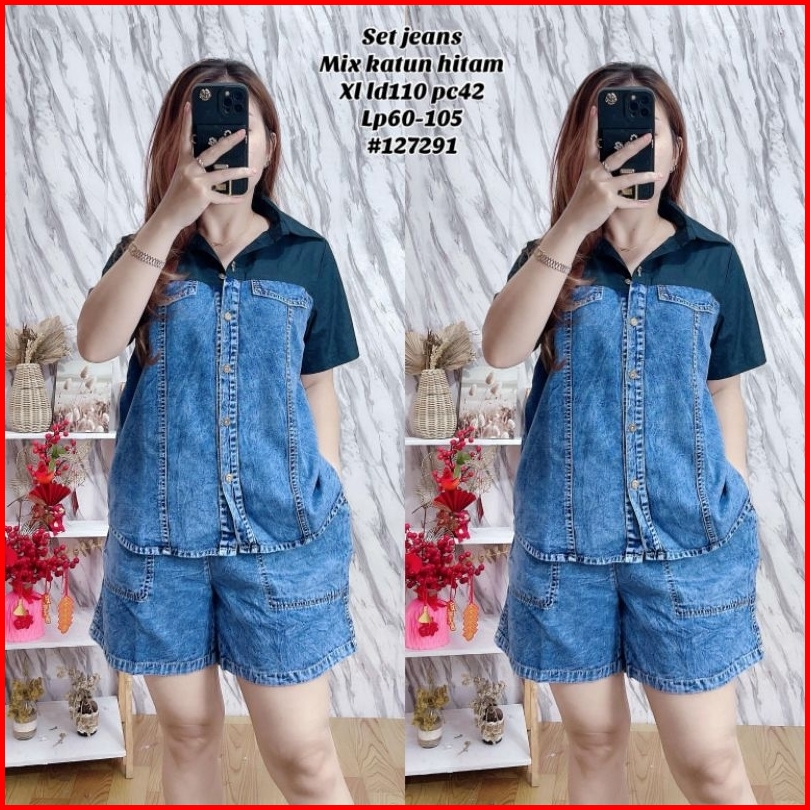 Oneset Jeans Kemeja Jeans Viral Jeans Artis