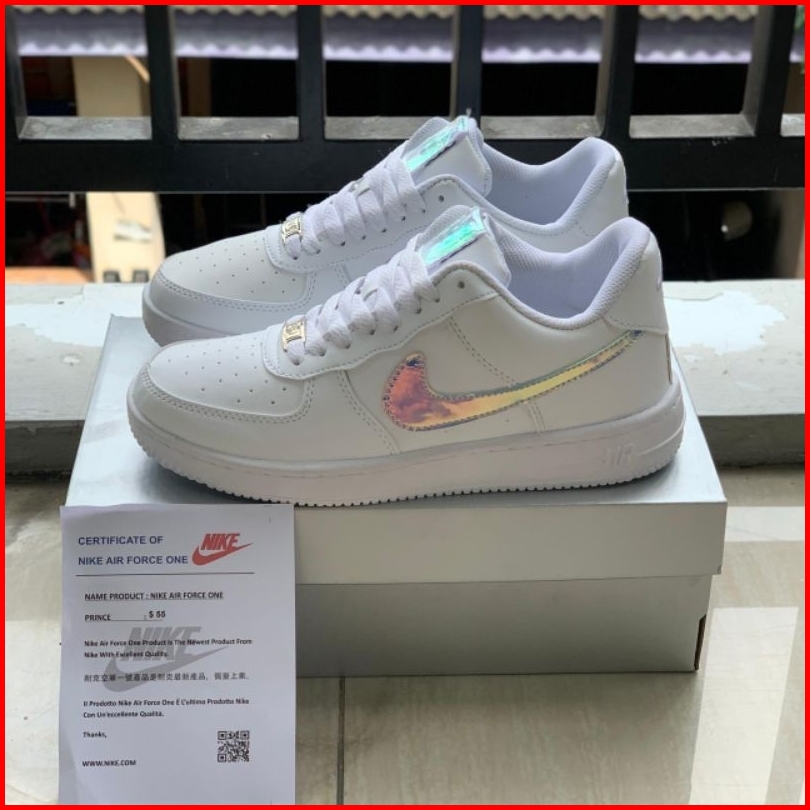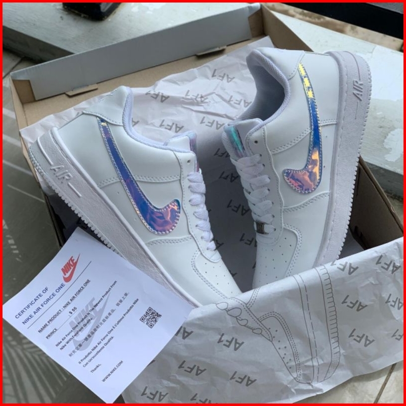 Sepatu Wanita Dan Pria Nk3 A1r Forc3 1 Putih Hologram Sneakers Import Premium Quality Sepatu Kasual Masa Kini Sepatu Cou