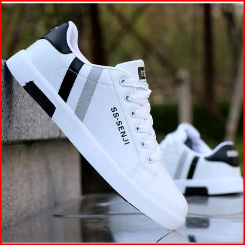Sepatu Sneakers Putih Hitam Pria Fashion Casual Ss.senji Terlaris