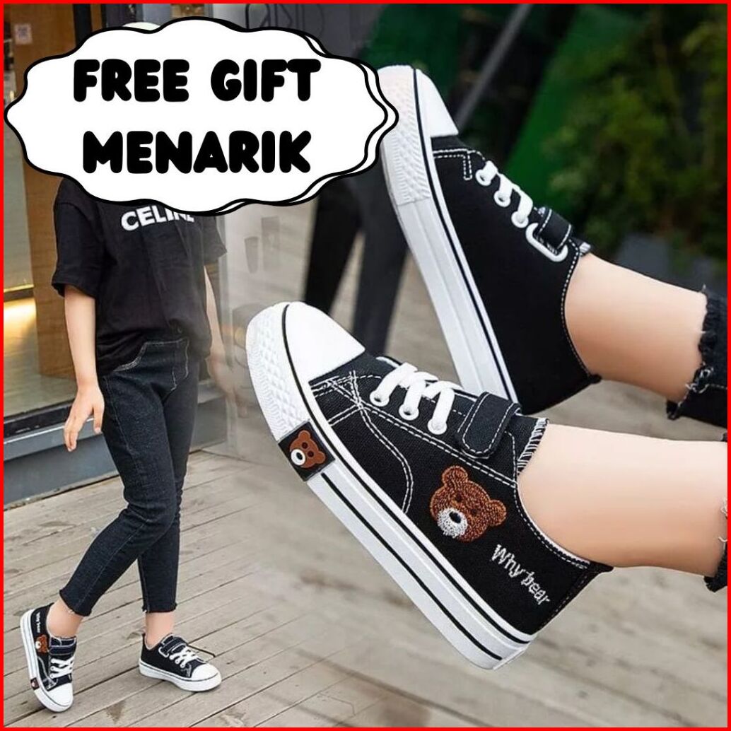 Cuci Gudang Promo 9.9 Jisoobaby Bb-3 Sepatu Anak Fashion Perempuan Sepatu Motif Bear Im 3 - 9 Tahun Bahan Canvas