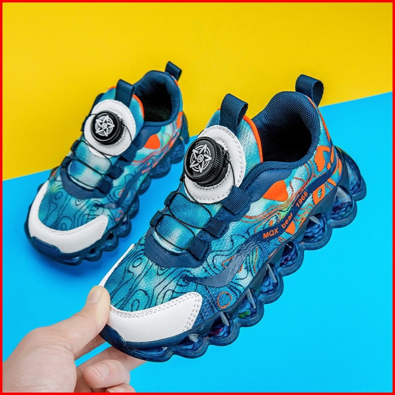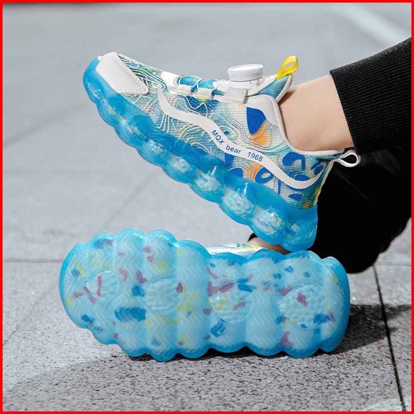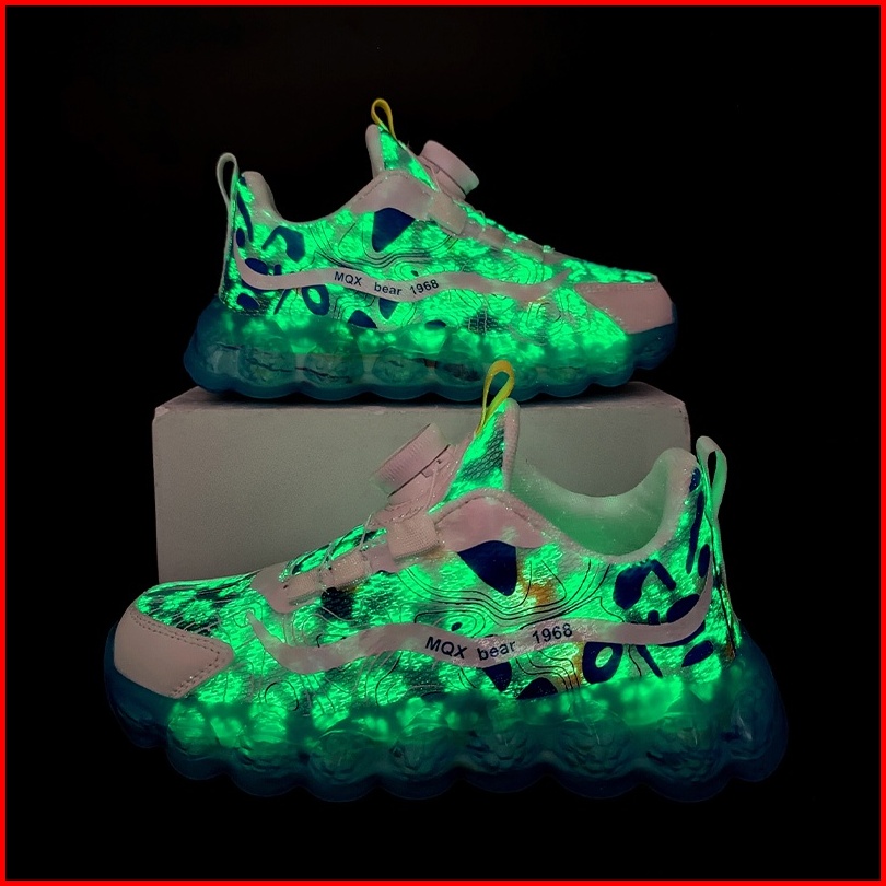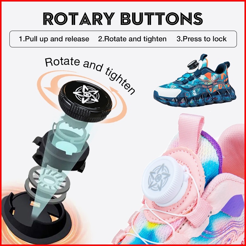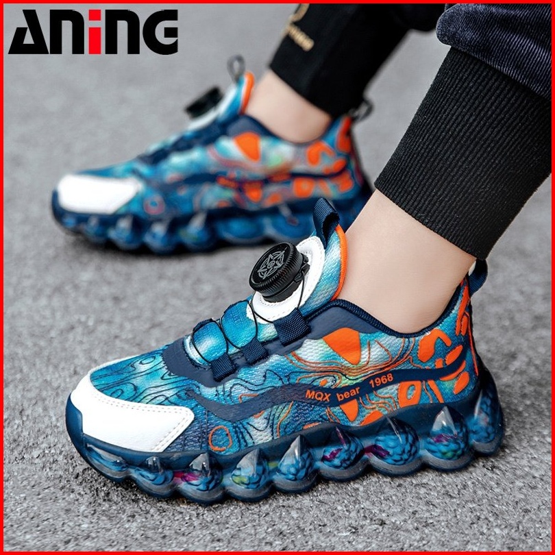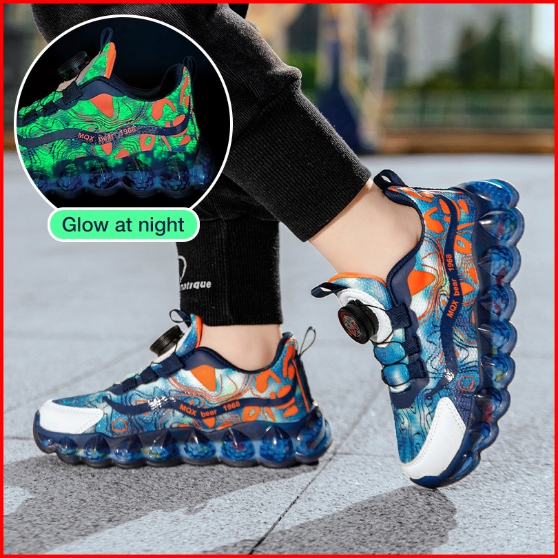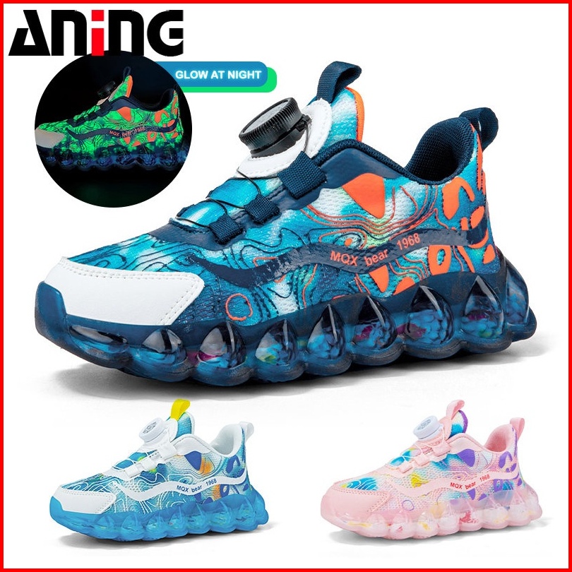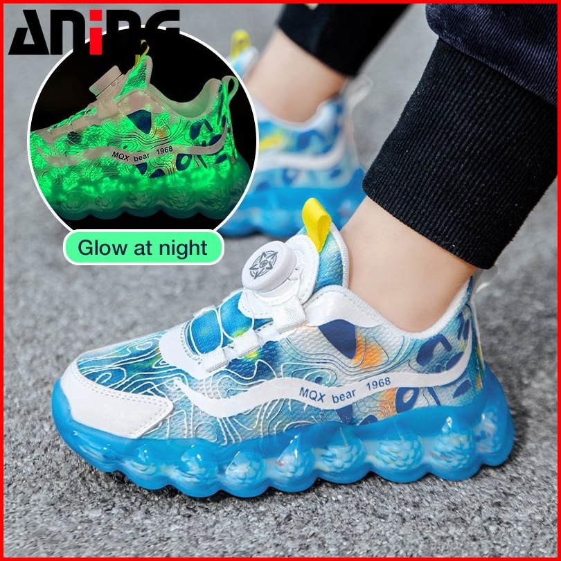 Aningaingboy-sepatu Sekolah Anak Laki Laki Sepatu Tombol Putar Sepatu Sneaker Bercahaya Sol Eva Ringan Dan Bernapas Sepa