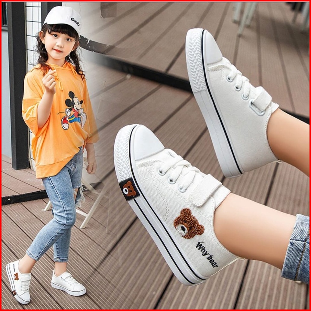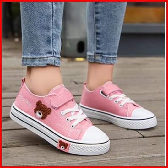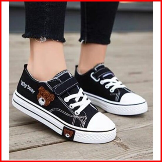 Lunna Sepatu Sekolah Anak Prempuan Warnita Unisex Tali Why Bear Low Sepatu Sneakers Sekolah Hitam Anak Prempuan Laki Lak