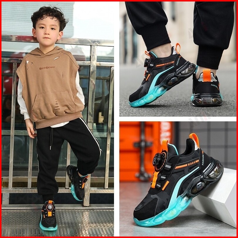 Aning Aningboy-sepatu Sekolah Anak Laki Laki Sepatu Olahraga Lari Warna Hitam Sol Lembut Sepatu Sneakers Dan Nyaman Fash