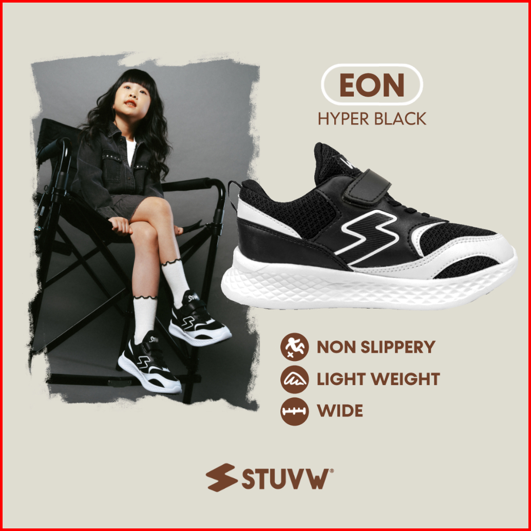 Stuvw Eon V2 Black White - Sepatu Sekolah Anak - Sneaker Fashion Anak