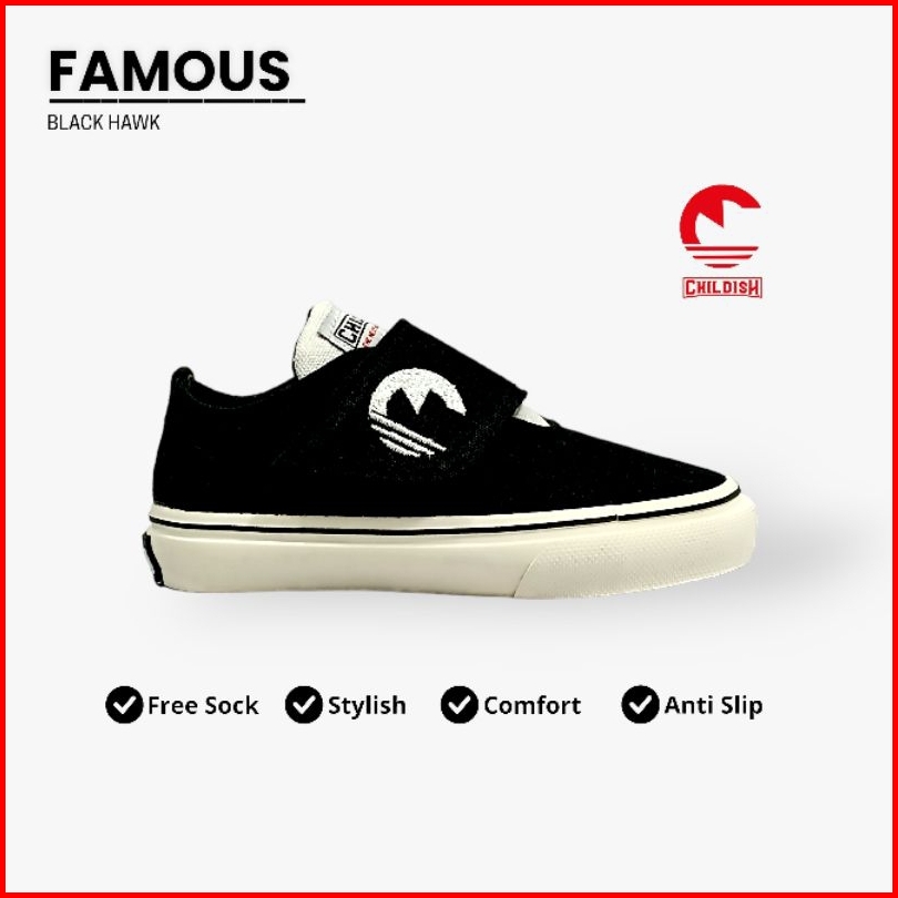 Childish - Sepatu Anak Laki Perempuan Sekolah Hitam Putih Casual