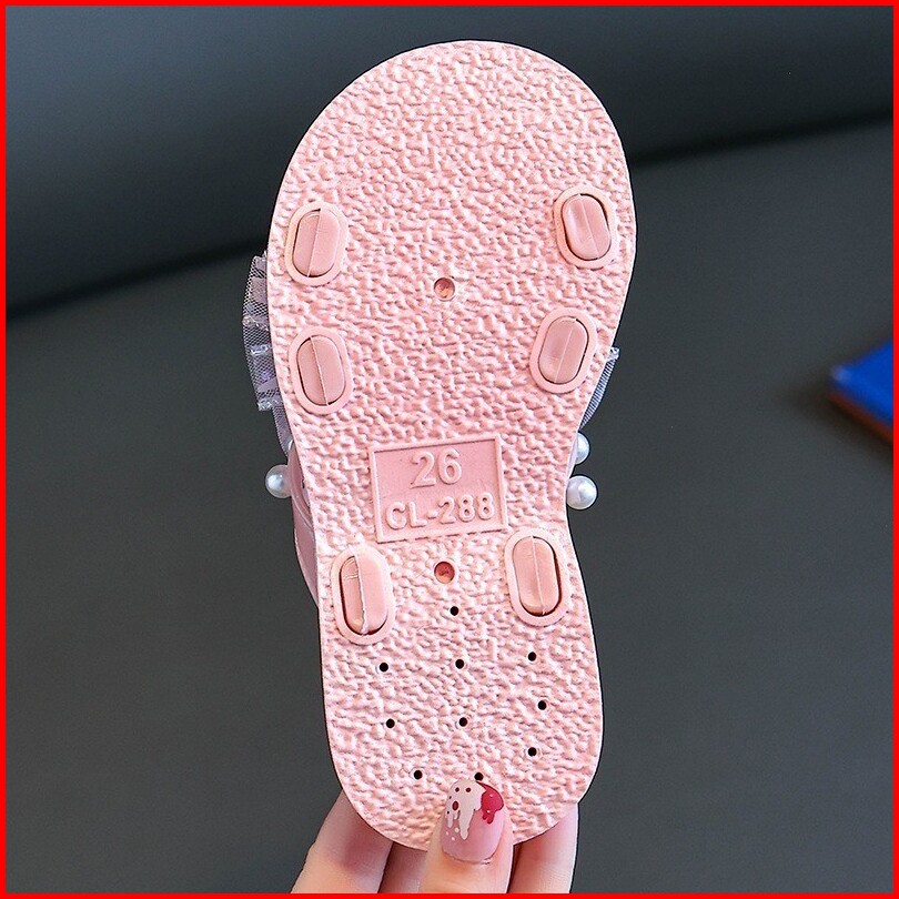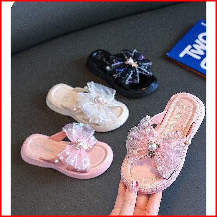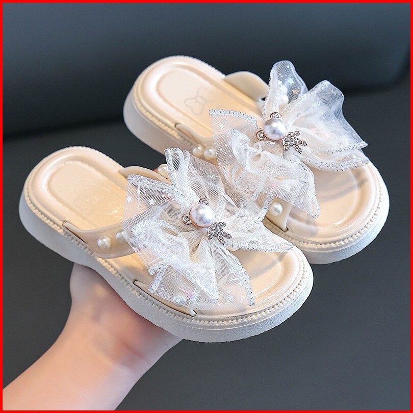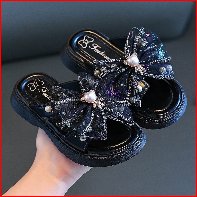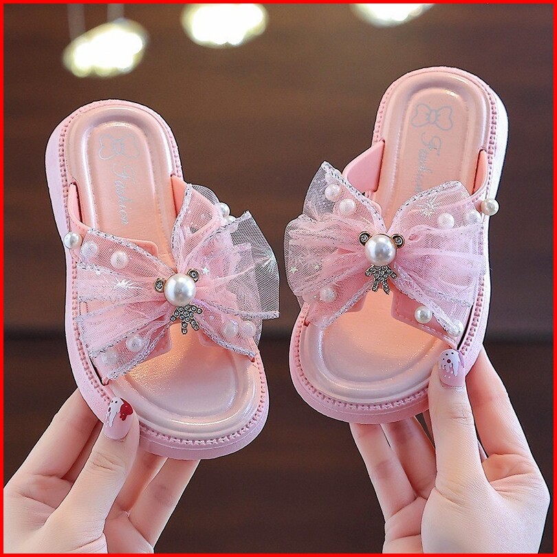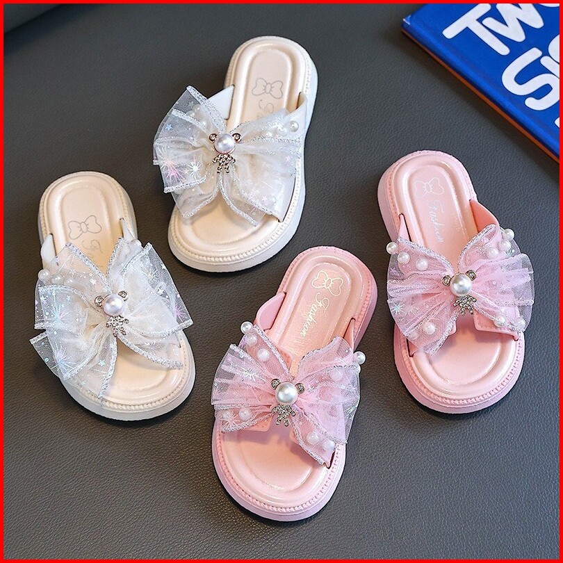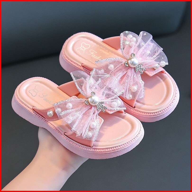 Littlekiddoss Shb419 Sandal Anak Perempuan Pita Bear Sendal Slop Pearl Anak Cewek Size 25-36 2-10tahun Sandal Pesta Anak