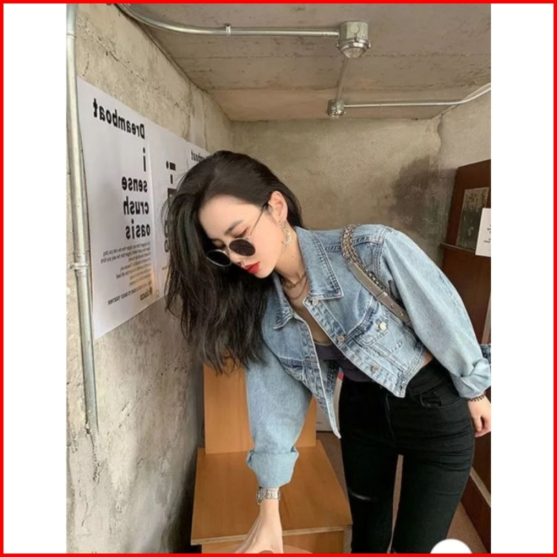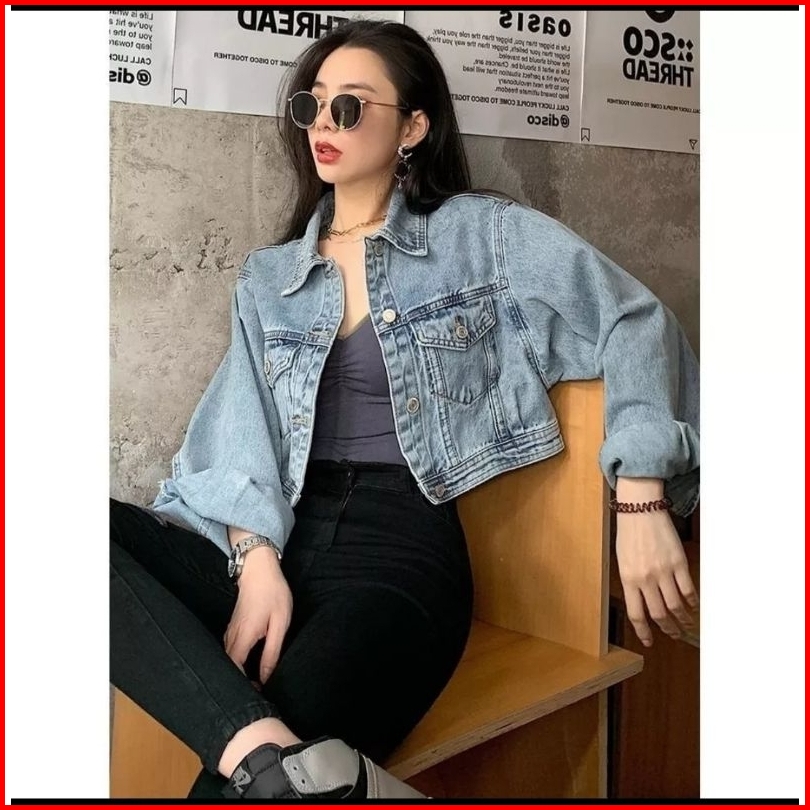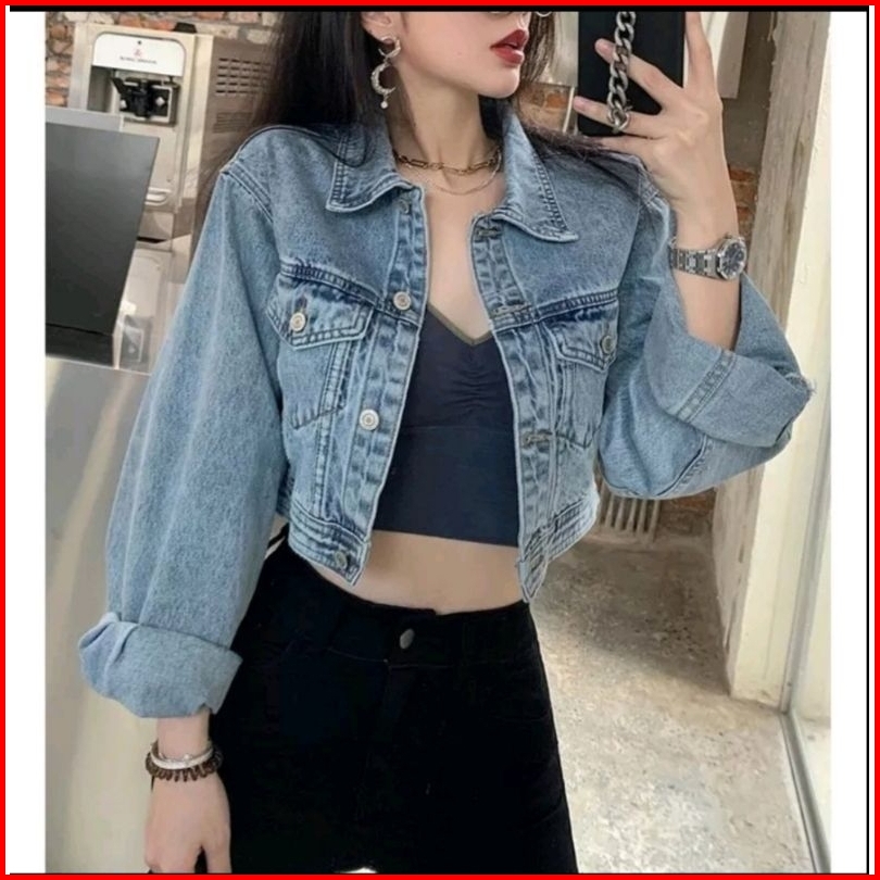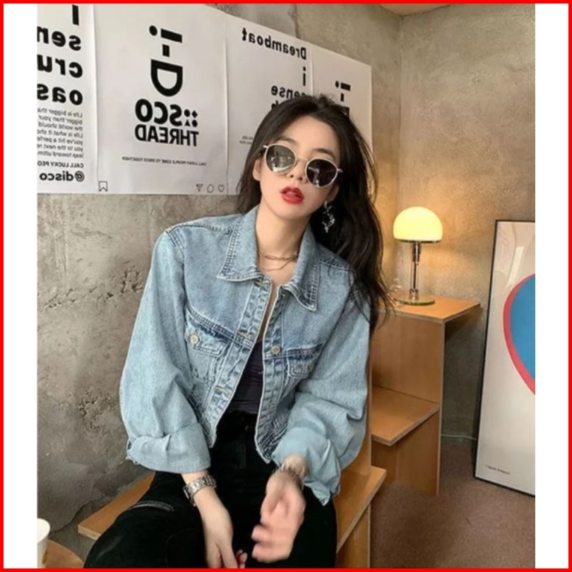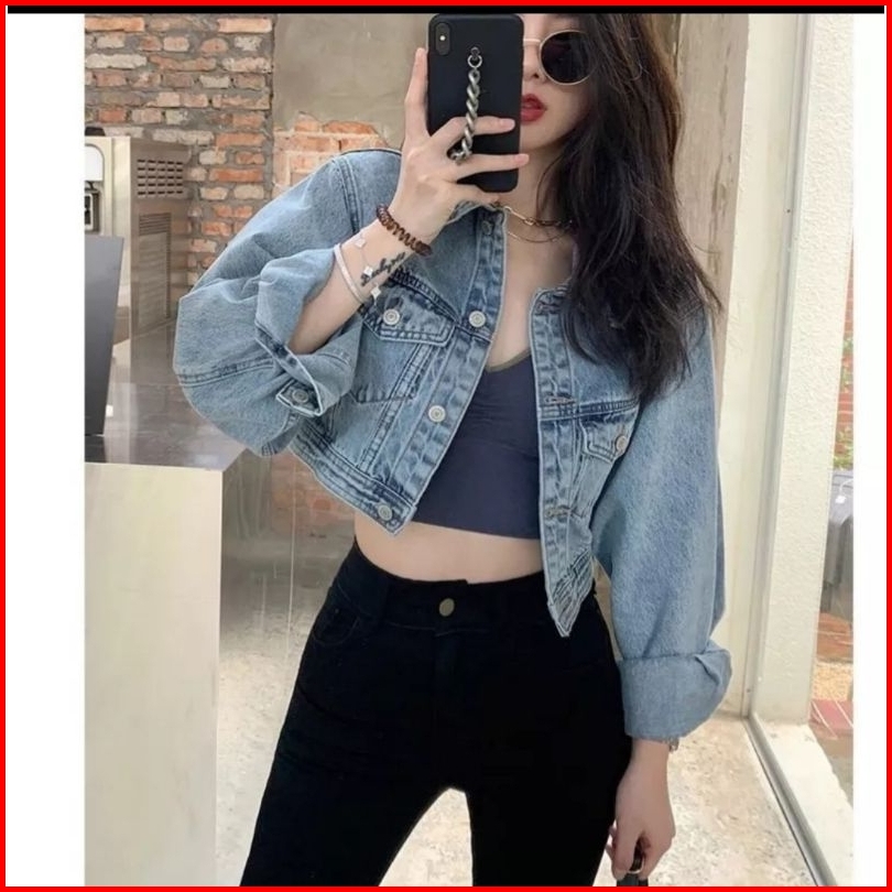Jaket Jeans Crop Wanita Lengan Panjang Model Terbaru