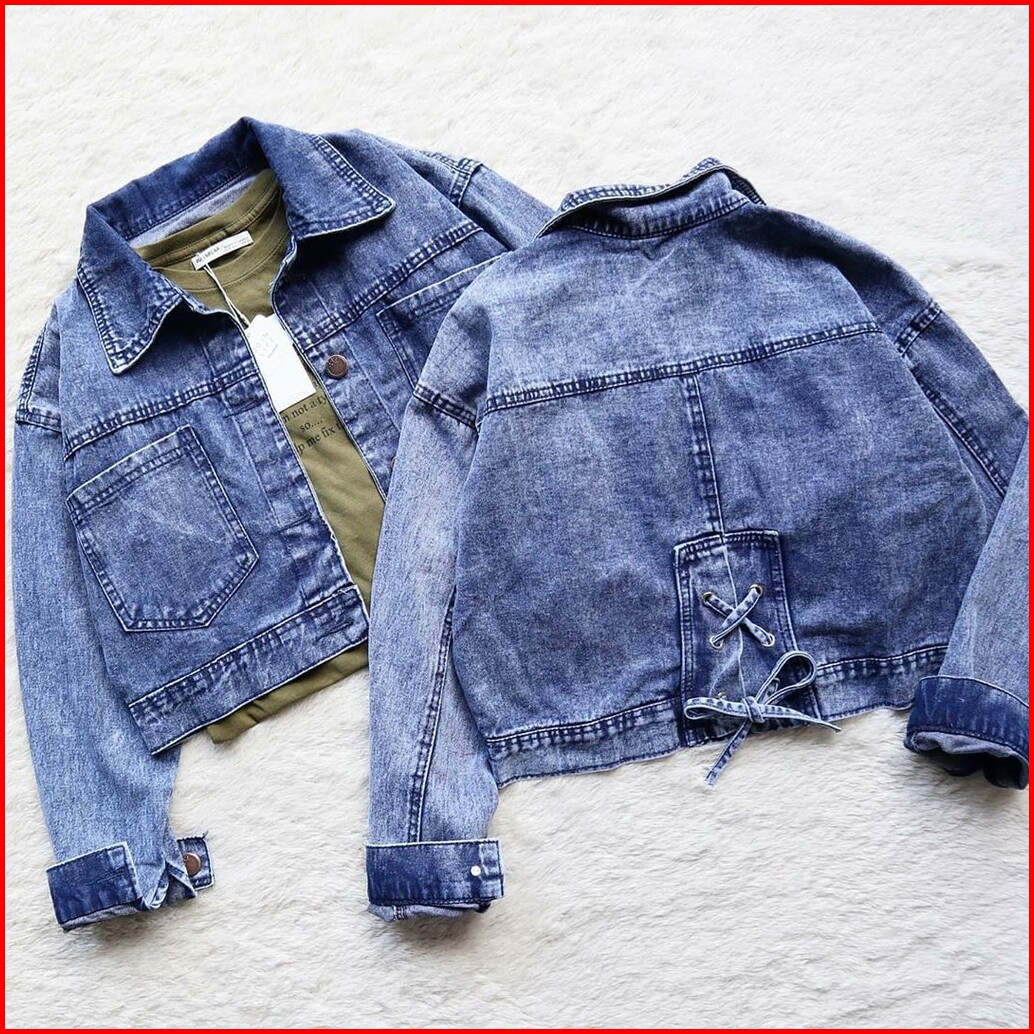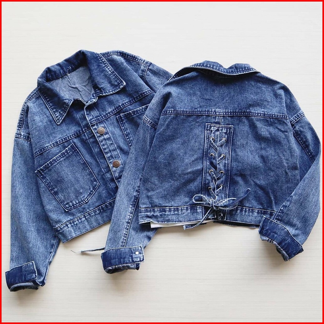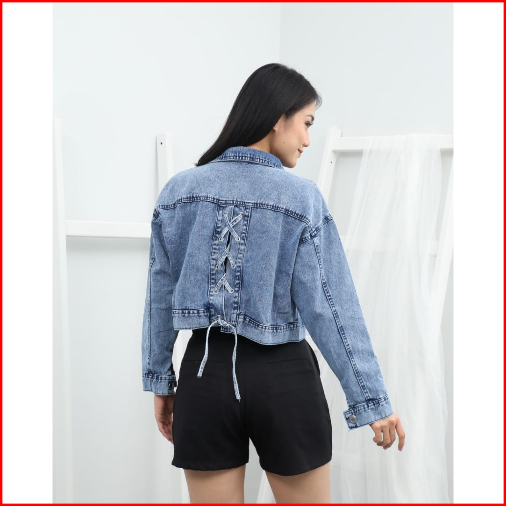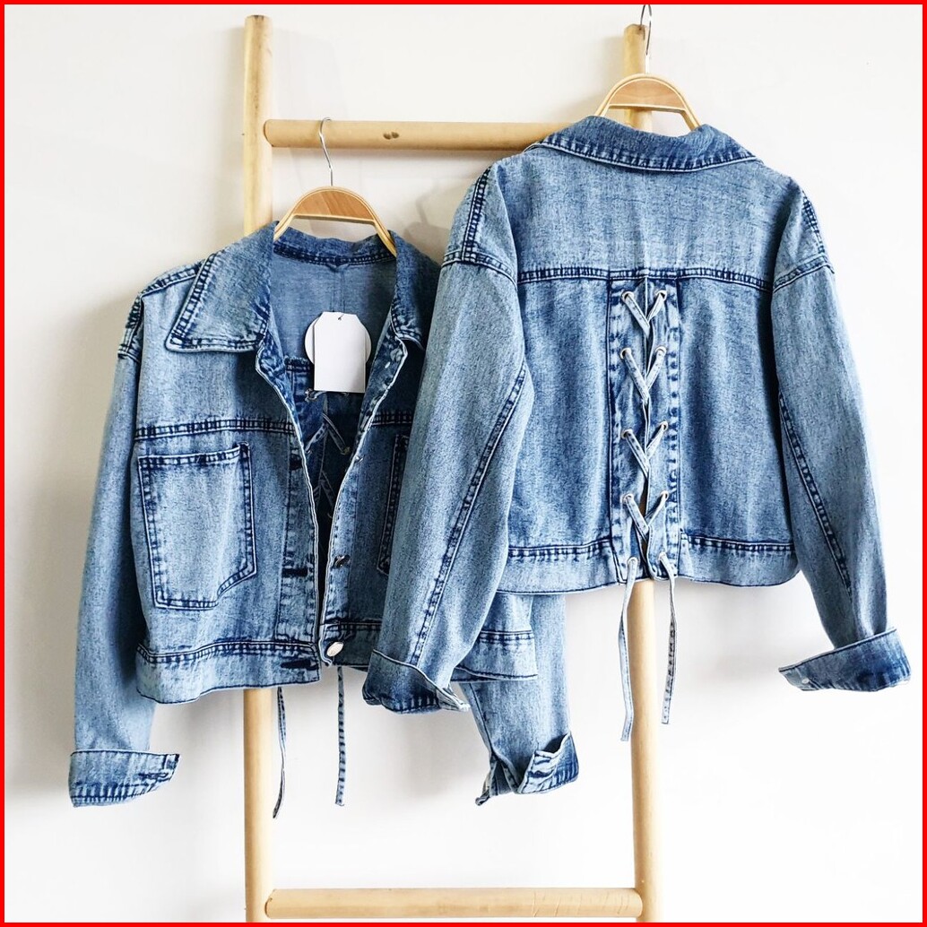 Jaket Jeans Crop Kode Fx 7129 Tali Jaket Wanita Jaket Motif
