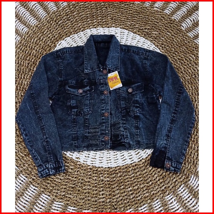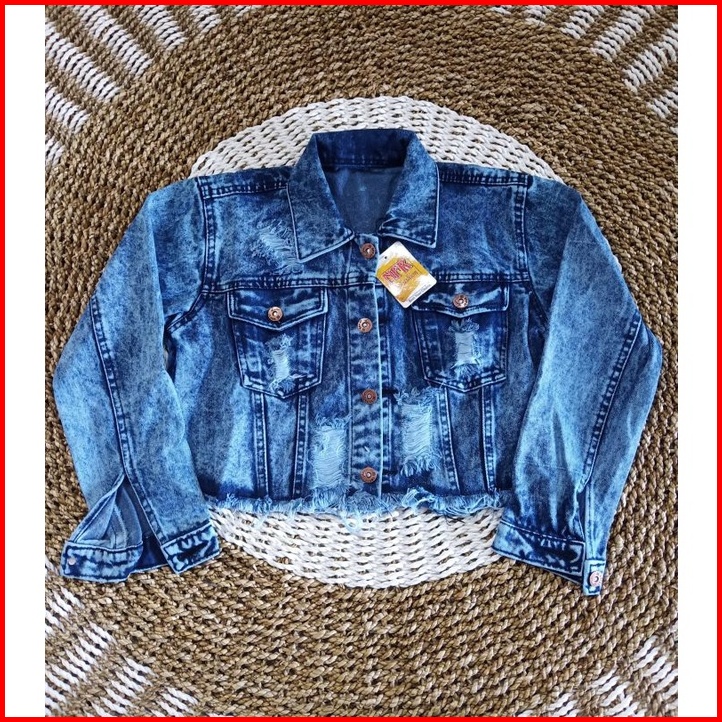 Jaket Jeans Biondy Crop Sobek Fashion No Sobek