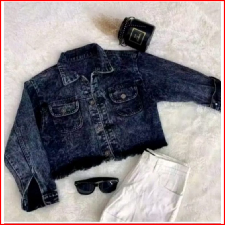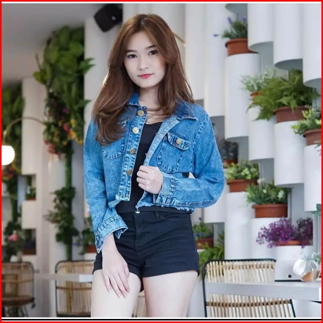 Jaket Jeans Crop Rawis Wanita Snow Black Blue Tebal Korean Style Milea Denim Levis Lepis Terbaru Murah Ori Jaket Jeans N