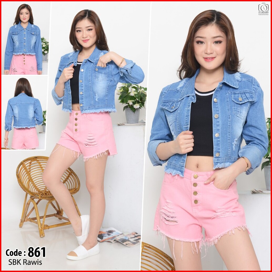 Mc Girl Jaket Crop Jeans Sobek Rawis