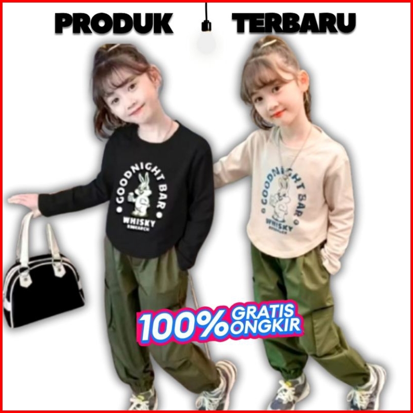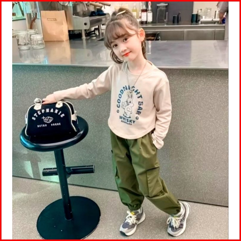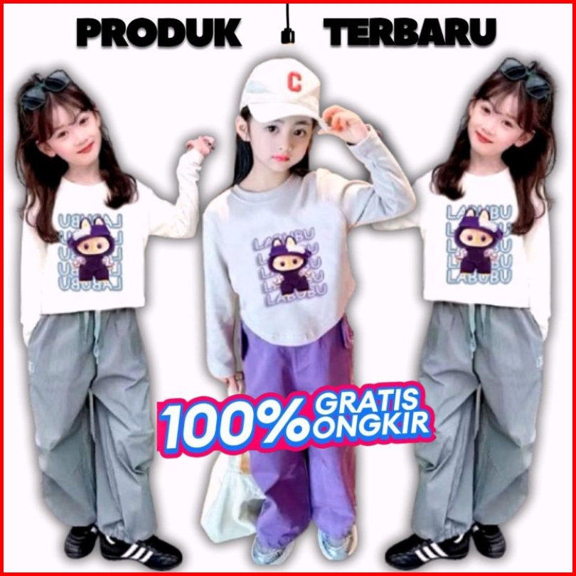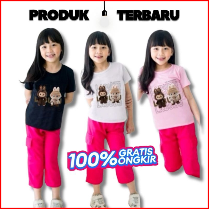 Setelan Baju Labubu Anak Perempuan Celana Cargo Usia 1 12 Tahun Viral Terbaru