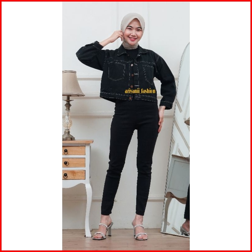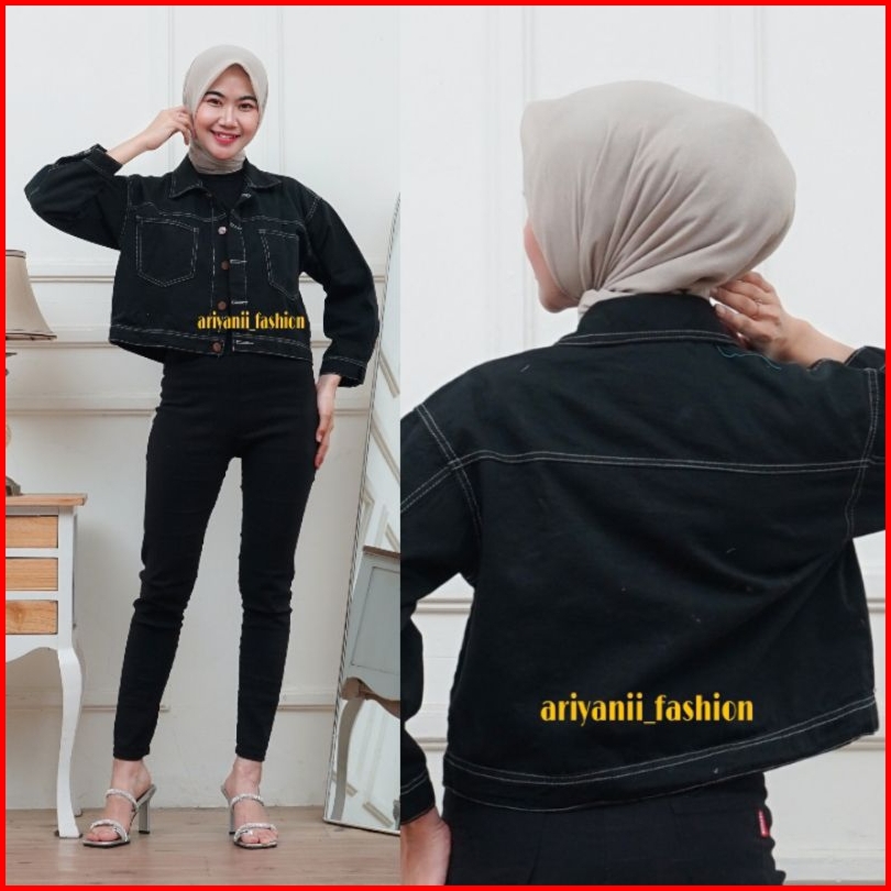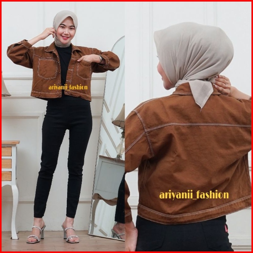 Jaket Jeans Crop Pocket Oversize Jacket Ld 110 Denim Wanita Outer Dona Vintage Jaket Jins Korean Style Nyaman Kekinian M