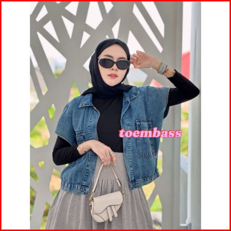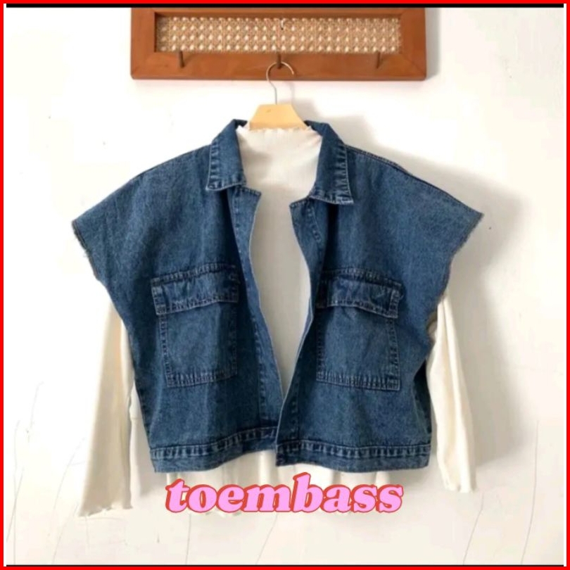 Jaket Rompi Oversize Jeans Denim Wanita Vest Vintage Jins Jumbo Korean Style Outer Kekinian