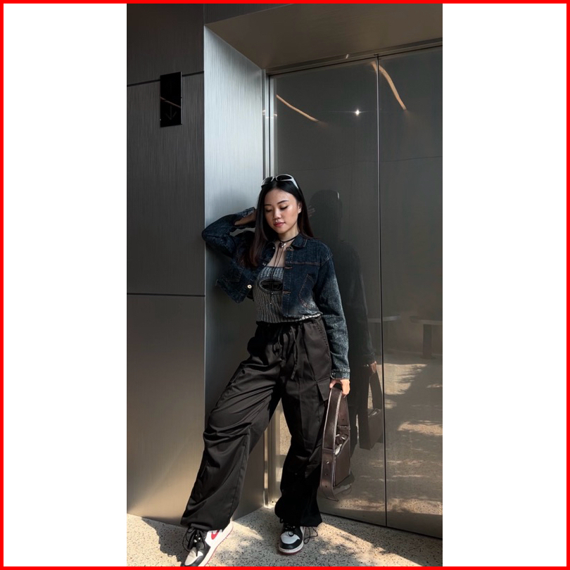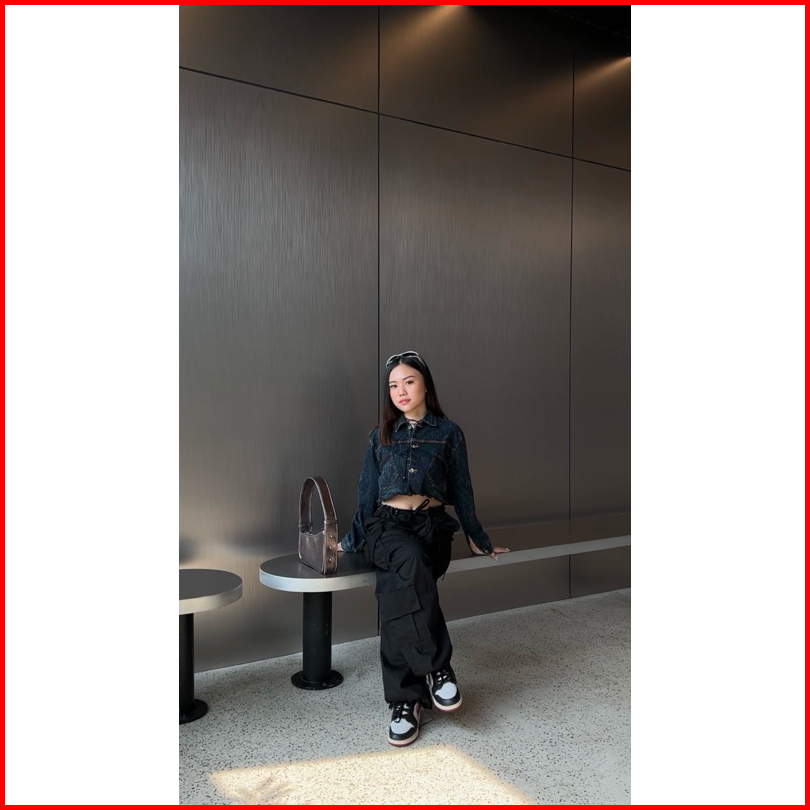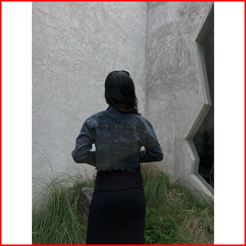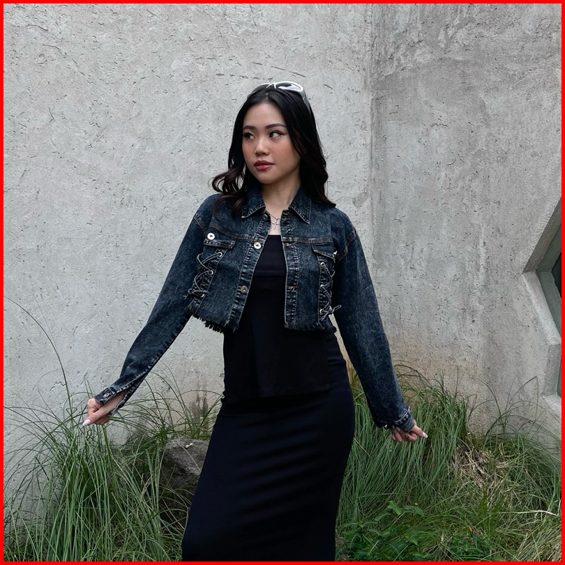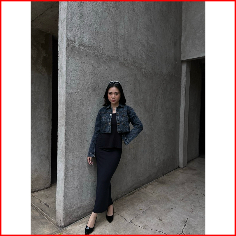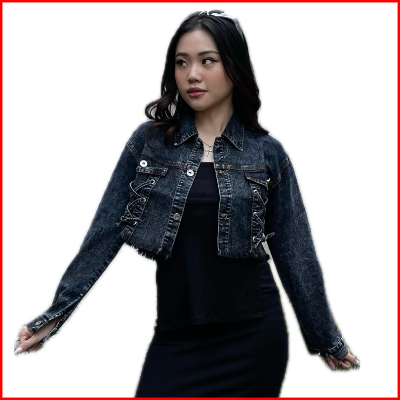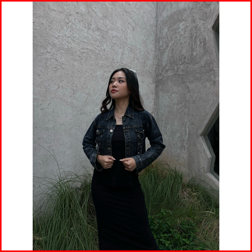 Rivani Jaket Jeans Denim Crop Top Wanita Snow Black Hitam