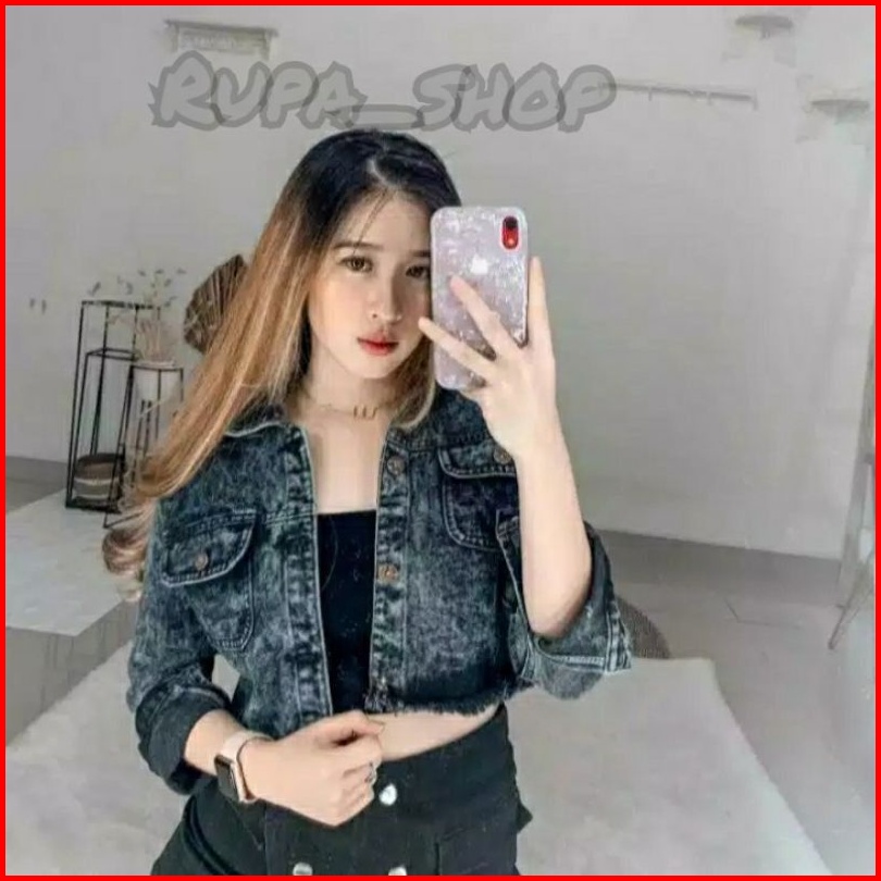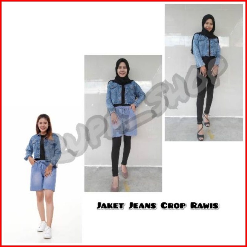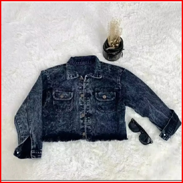 Jaket Jeans Wanita Chanmi Crop Rawis Snow Black