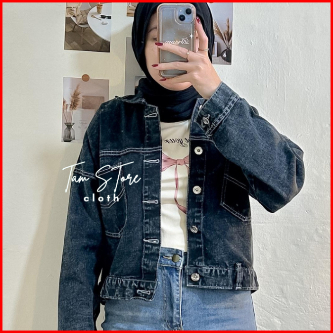 Jaket Jeans Wanita Variasi Kancing Belakang Meizia
