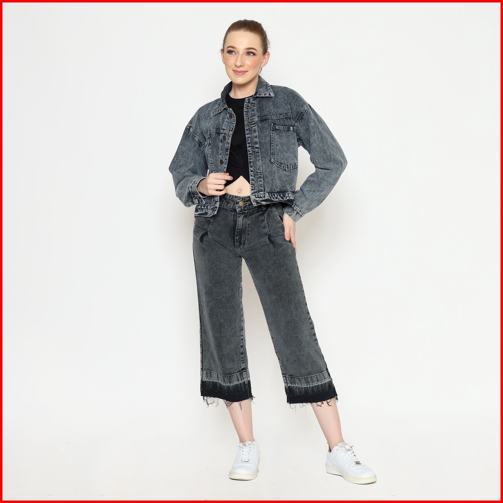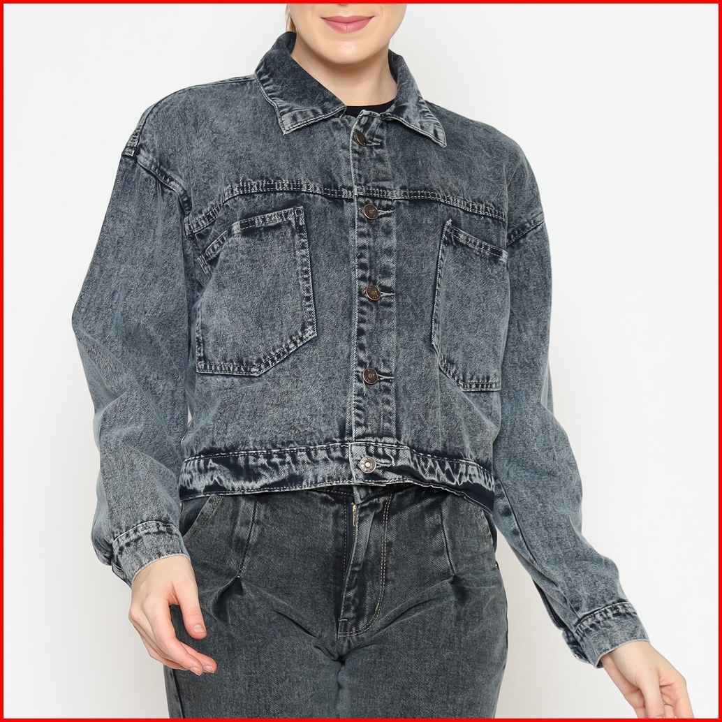 Fitwear Studio - Jaket Jeans Croptop Oversize Khansa Button