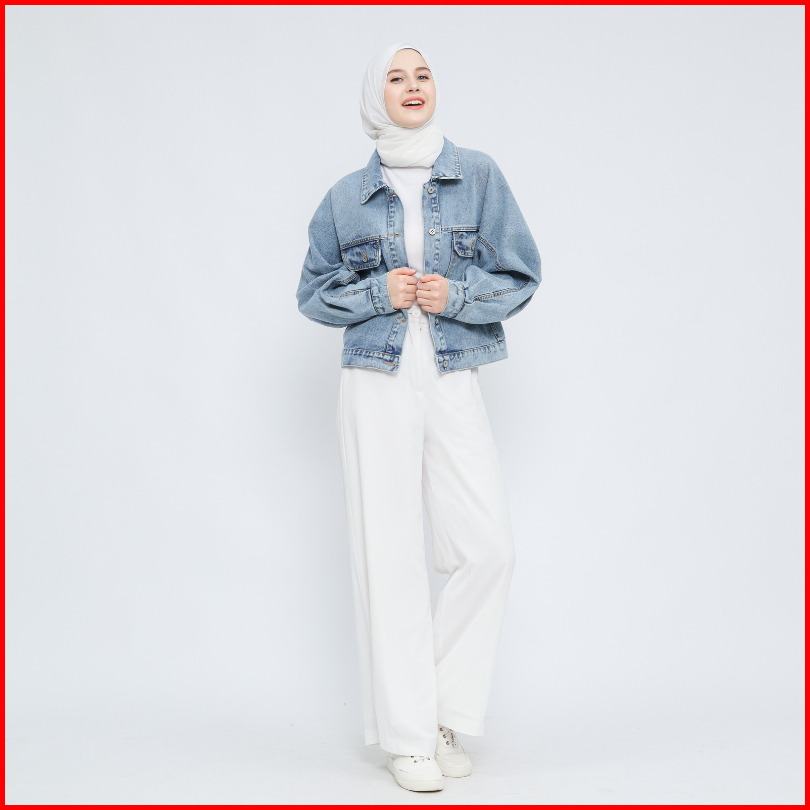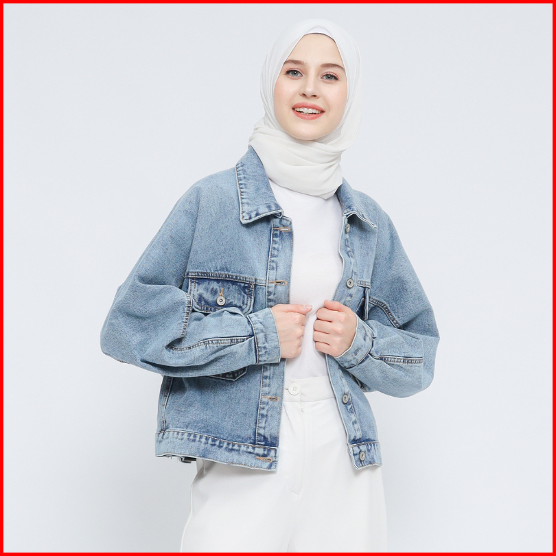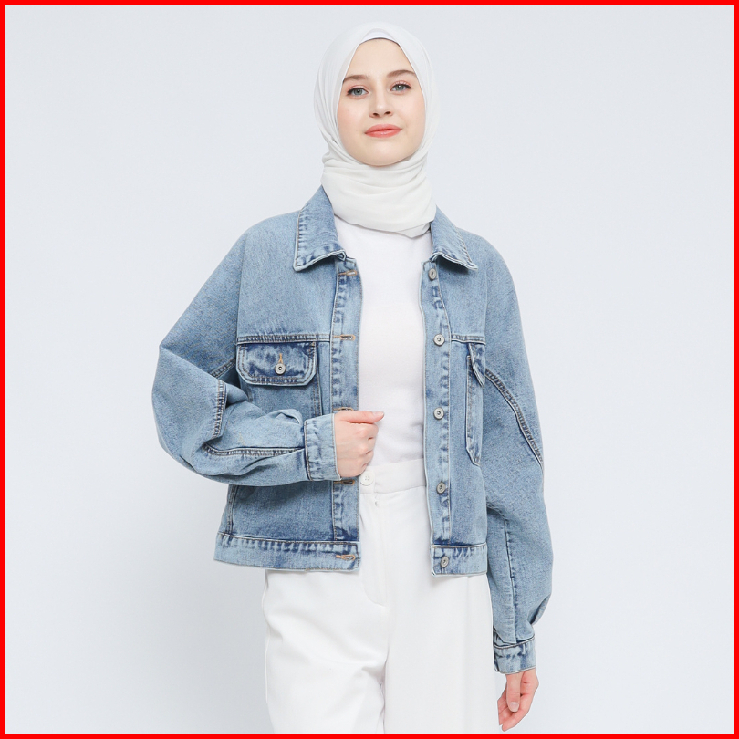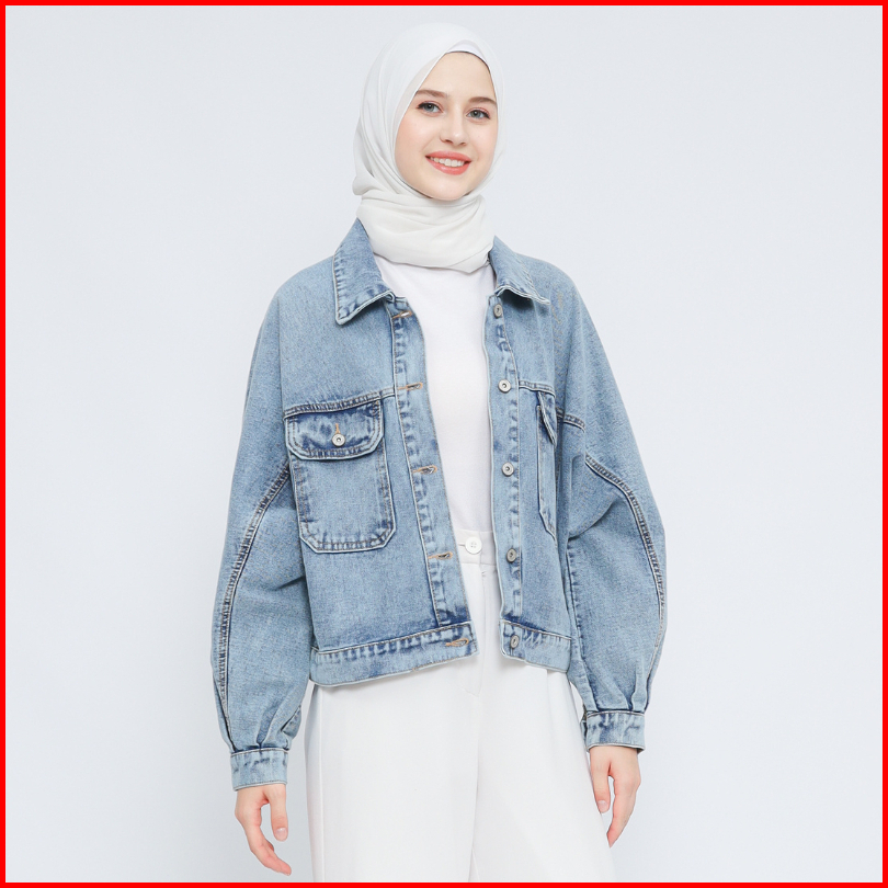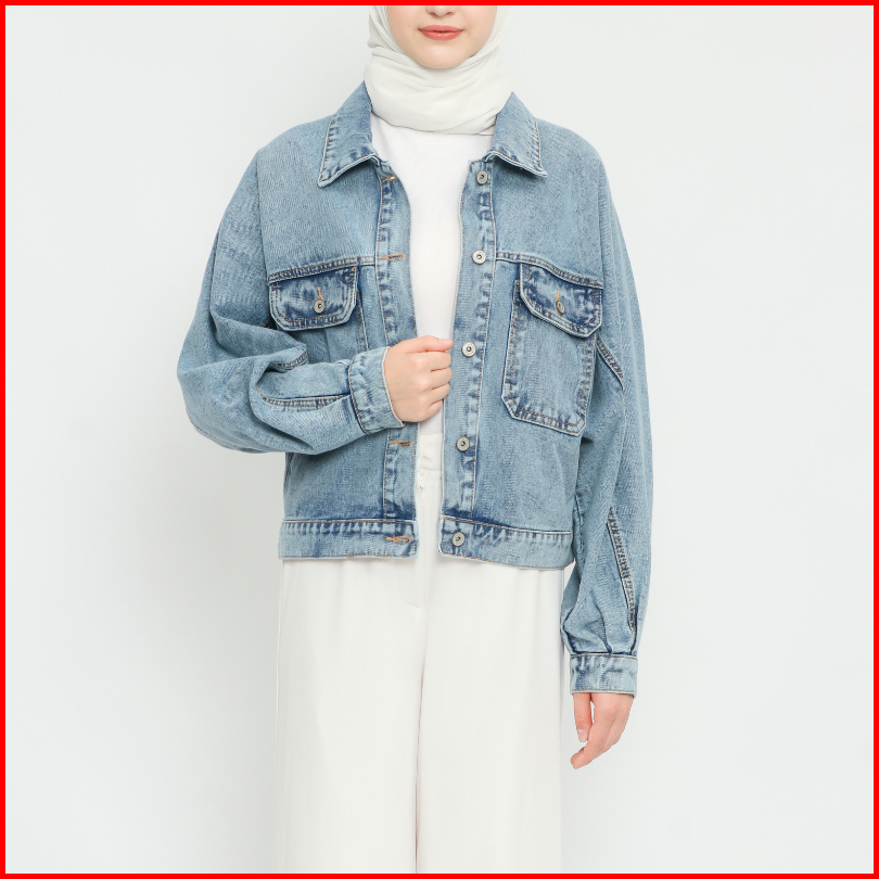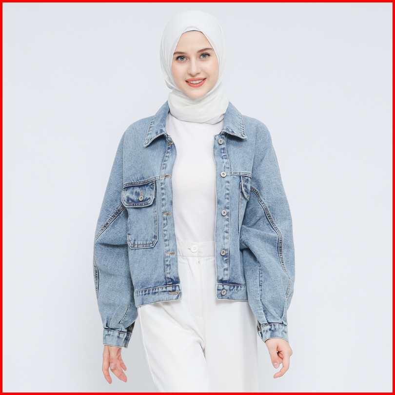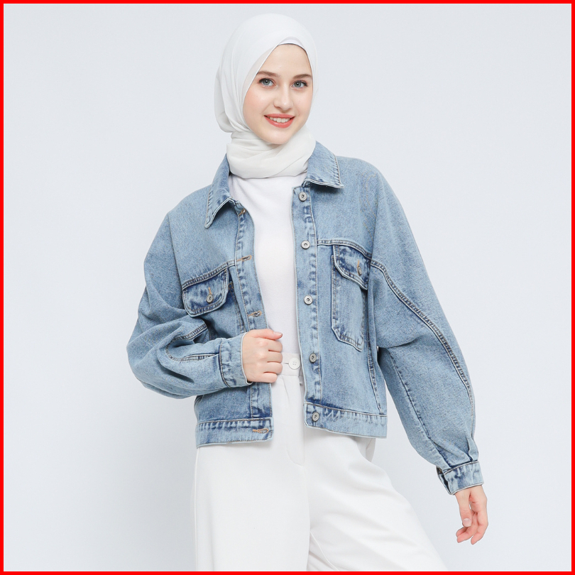 Myself Jaket Oversize Crop Jeans Denim Wanita Lunna