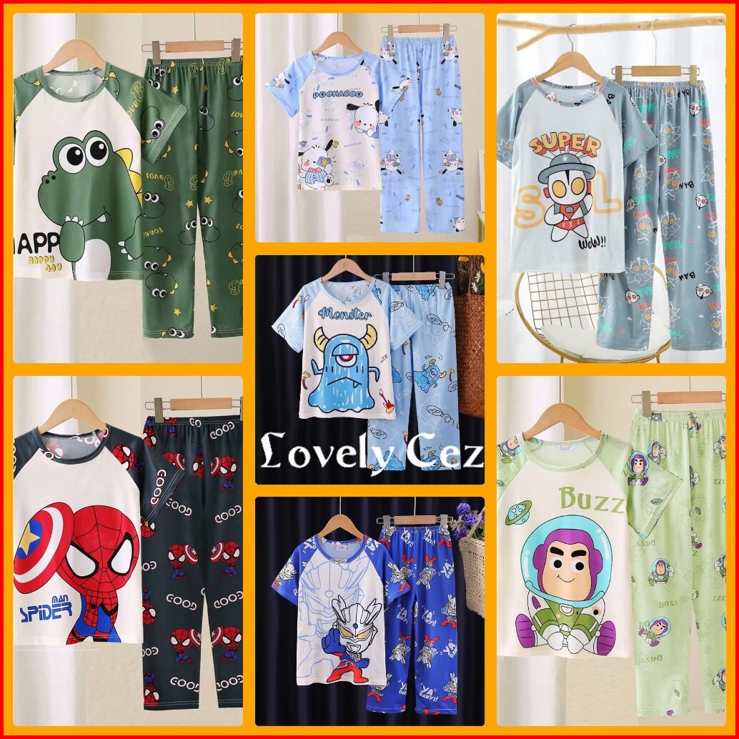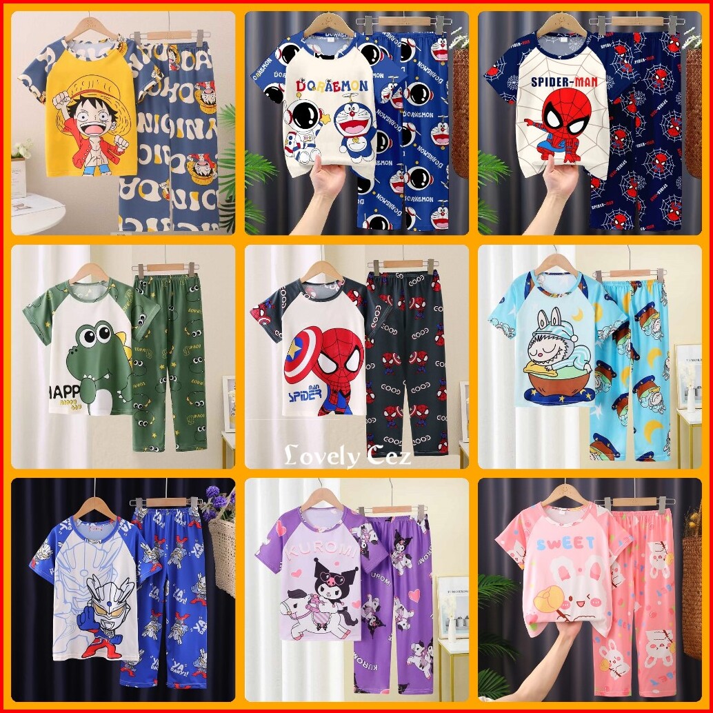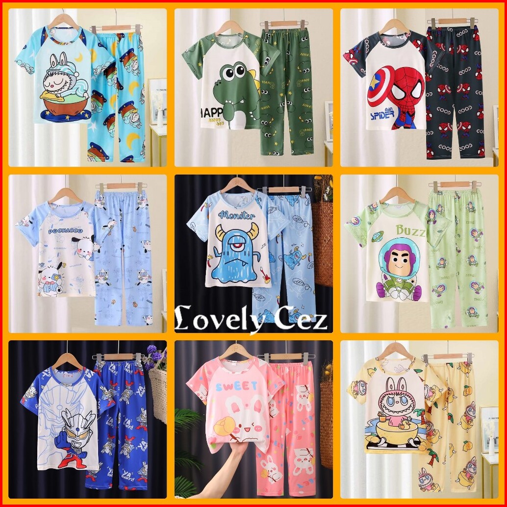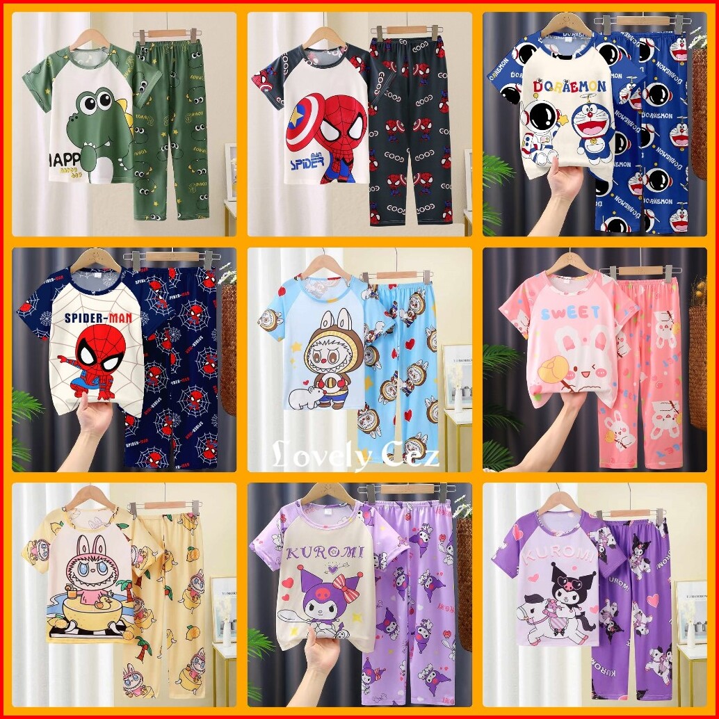 Piyama Anak Laki Laki Perempuan Import Baju Tidur Anak Dino Robot Kuromi Labubu