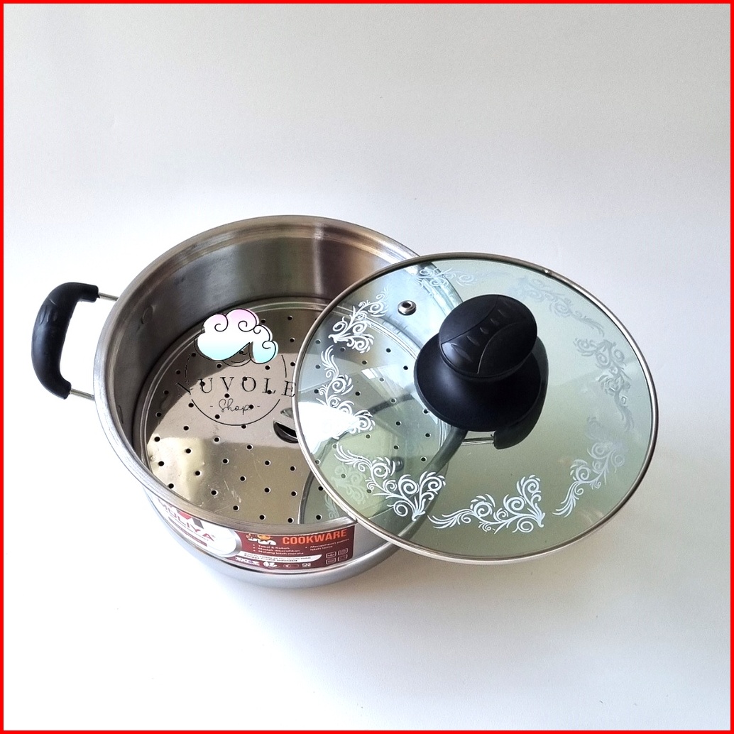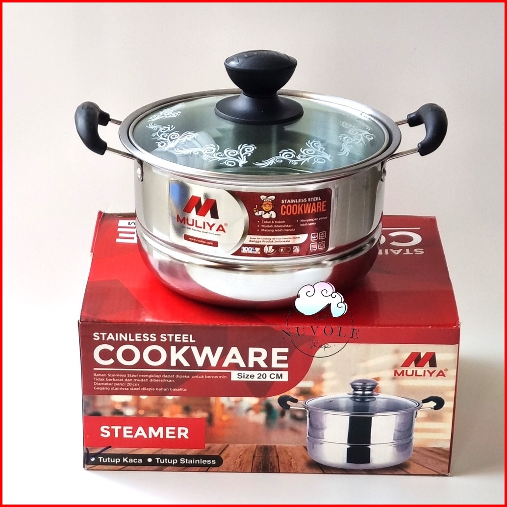 Muliya Panci Steamer Kukusan Tutup Kaca Stainless Steel 20cm 22cm 24cm Kukusan Kecil