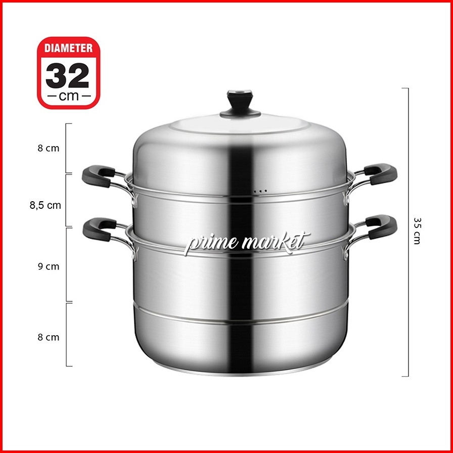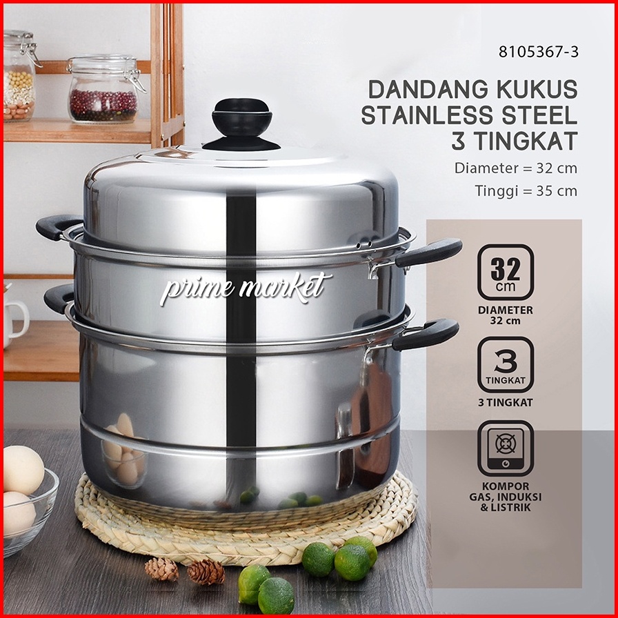 Panci Kukus Dandang Kukus 3 Tingkat Panci Steamer Panci Kukusan Stainless Steel 32 Cm 8105367-3