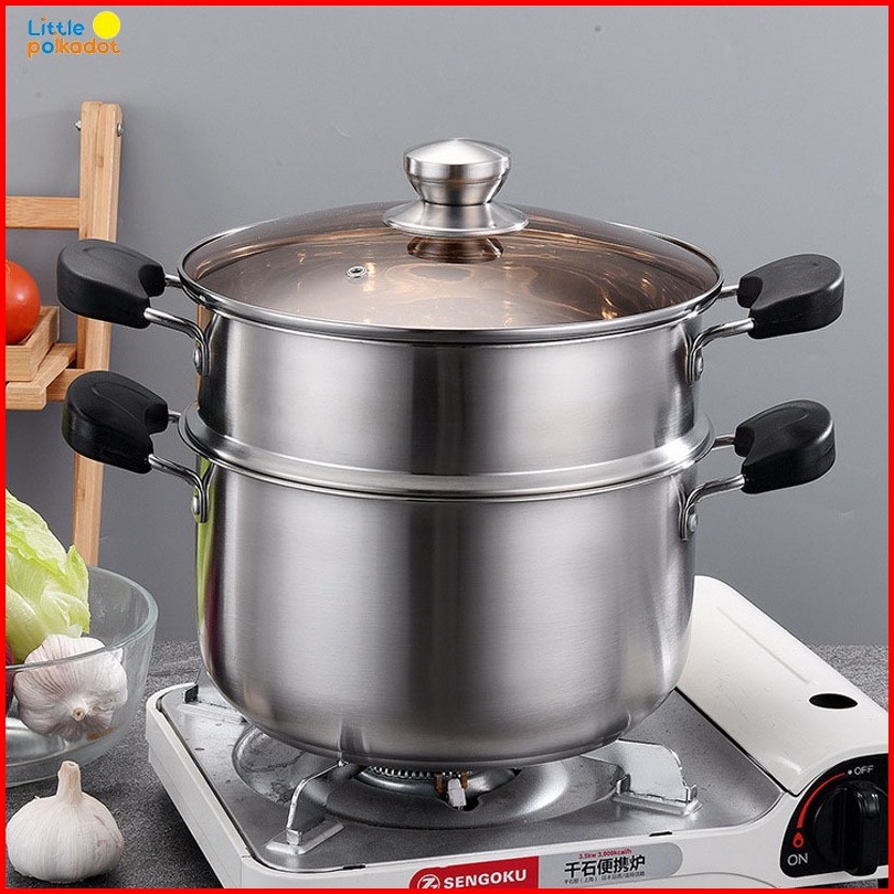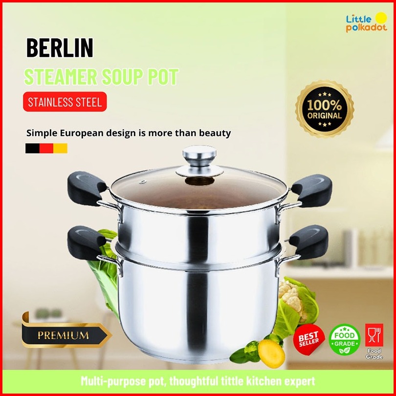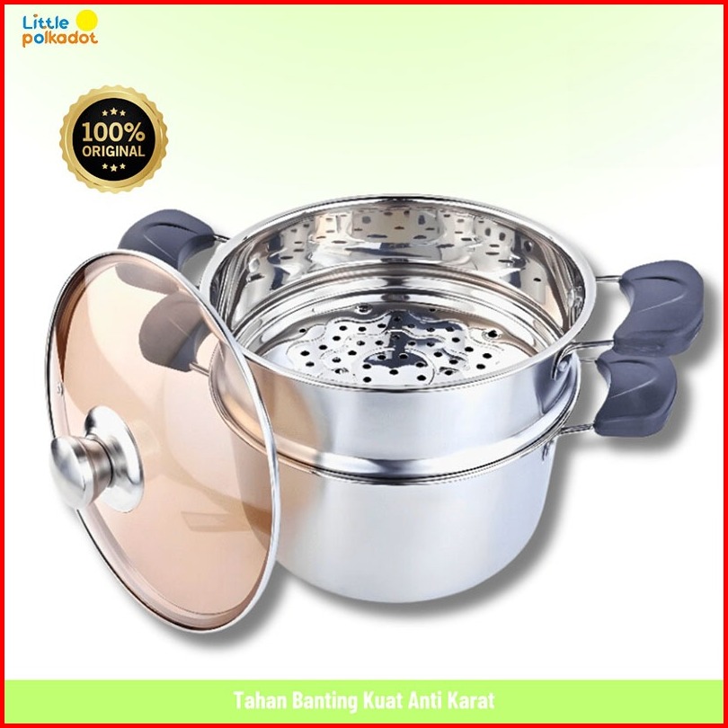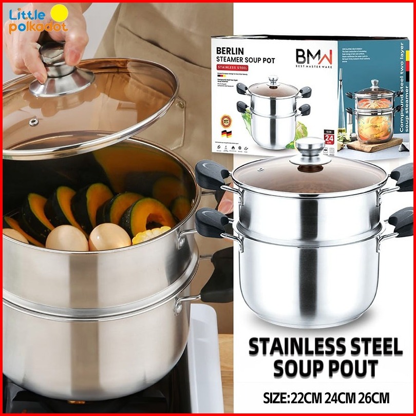 Bmw Original 2in1 Panci Kukus Steamer Soup Pout 2 Tingkat - Panci Kukus 22 24 26 28 Cm Full Stainless Kukusan Stainless