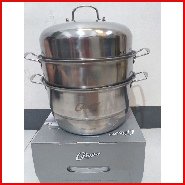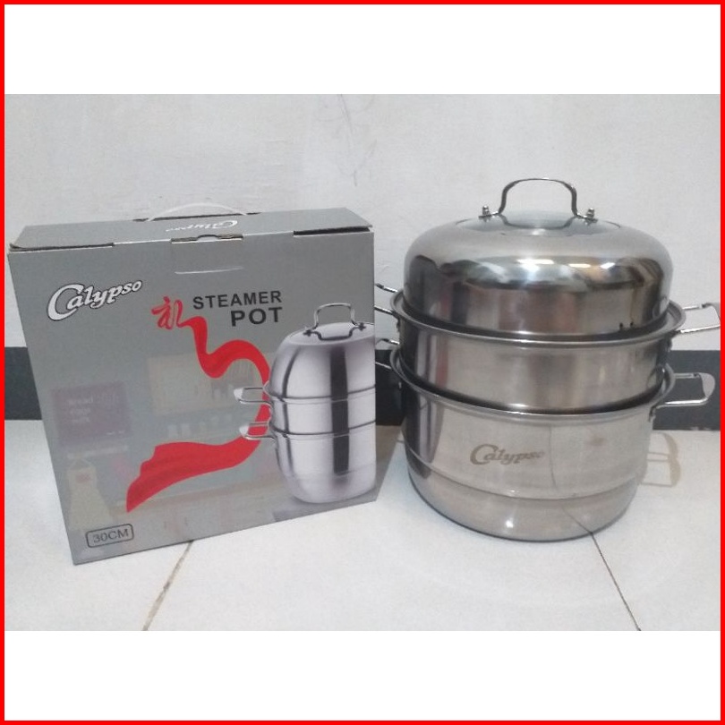 Calypso Panci Steamer Stainless Steel 3 Susun 30 Cm Panci Serbaguna Kukus Steamer Tingkat