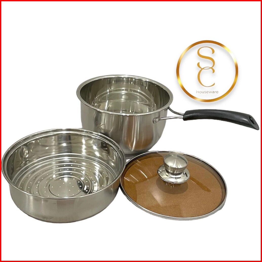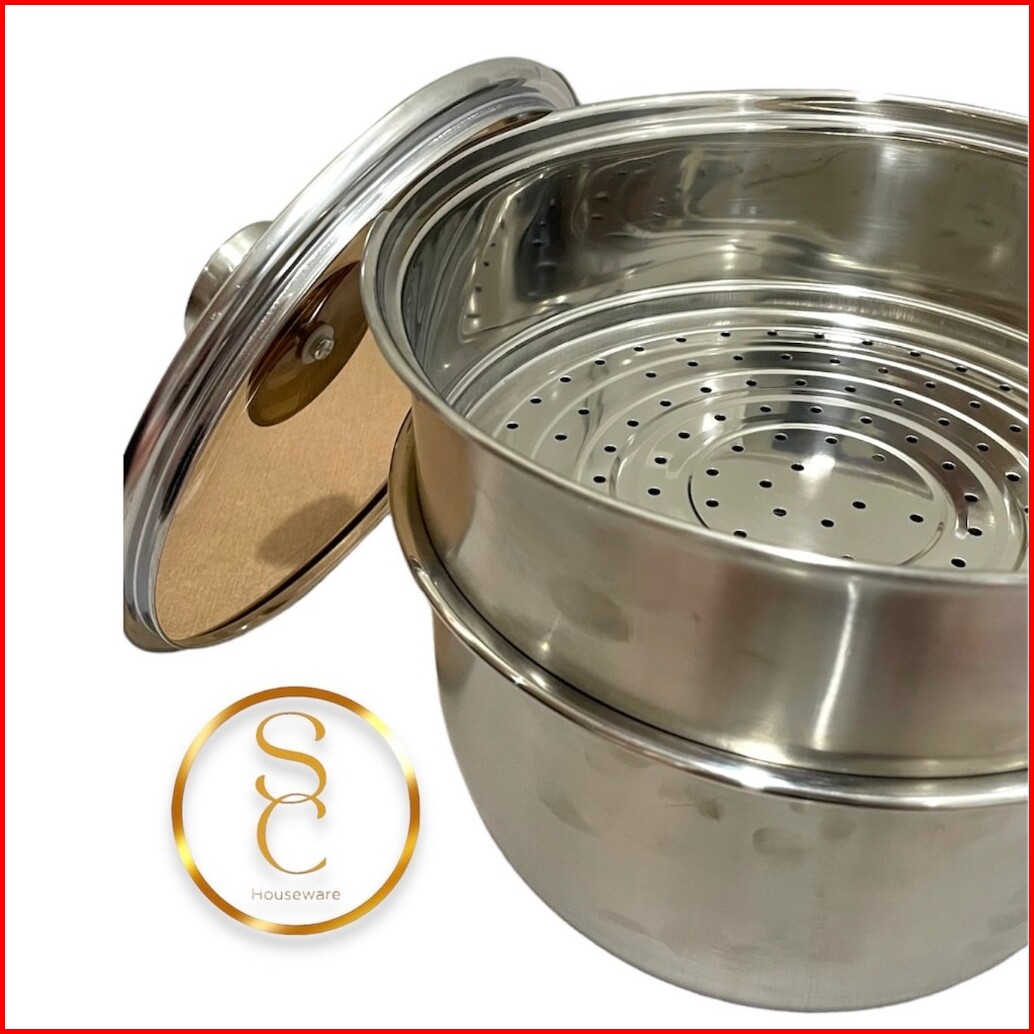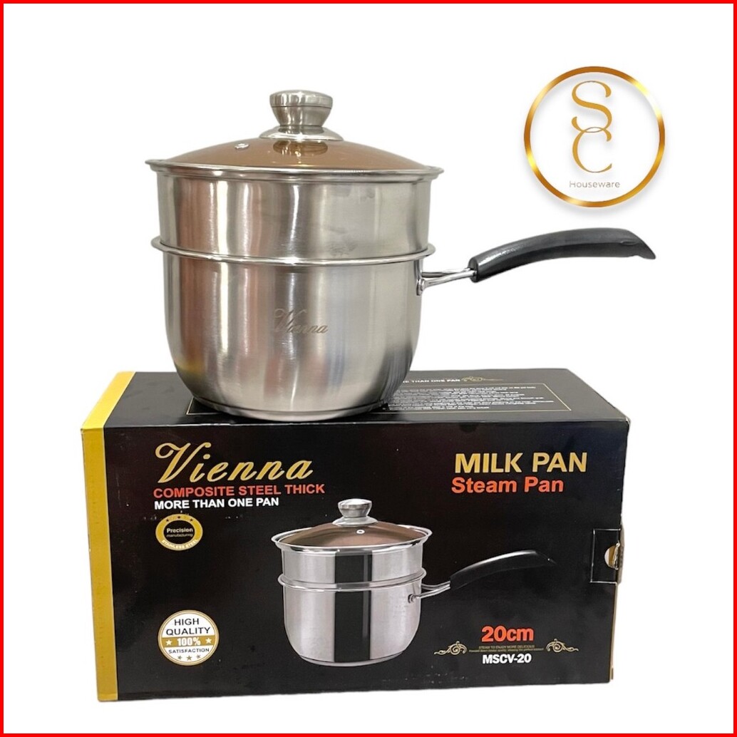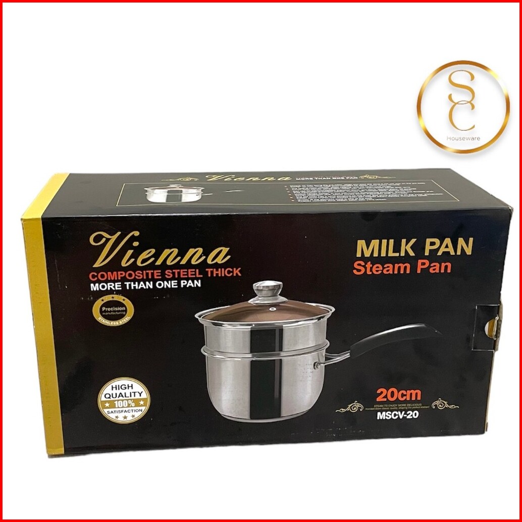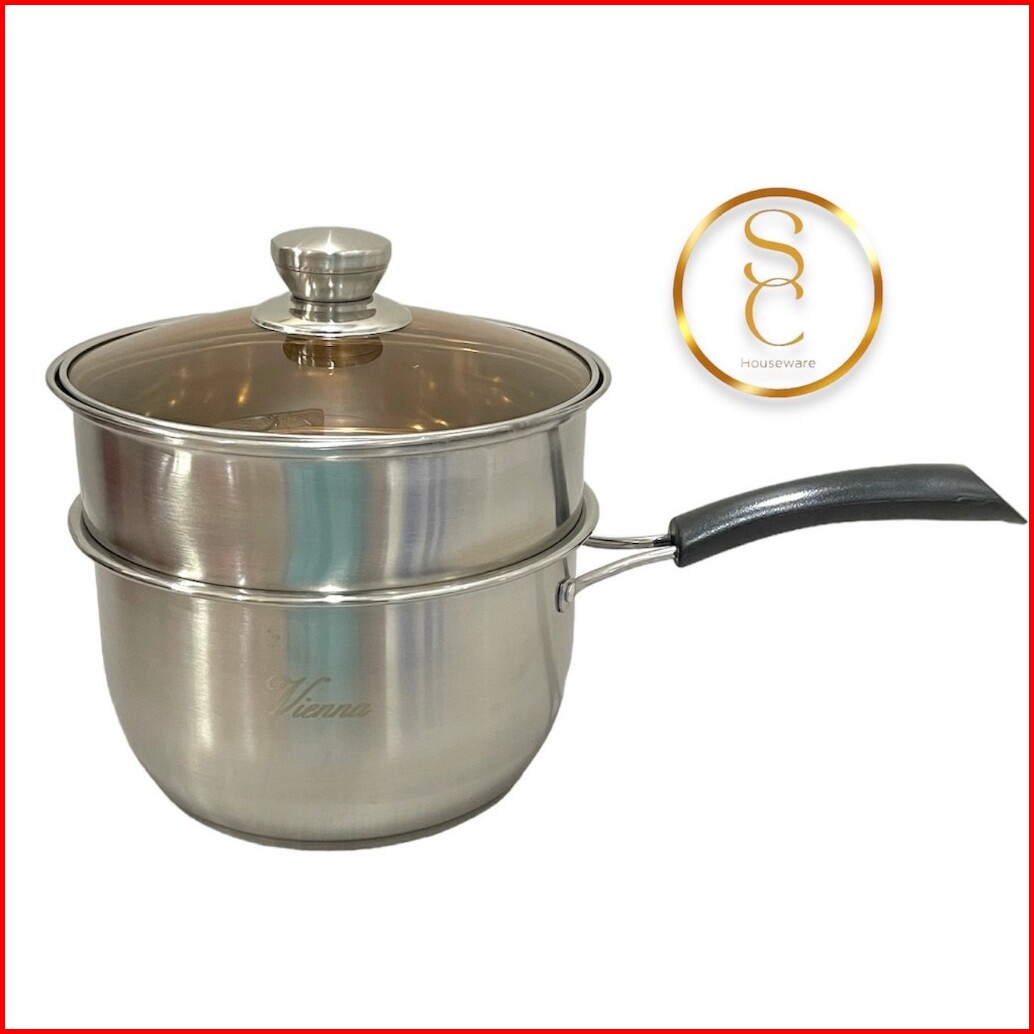 Vienna Panci Kukus Stainless Steel Tutup Kaca 20cm Susun-2 Alat Pegukusan Steamer