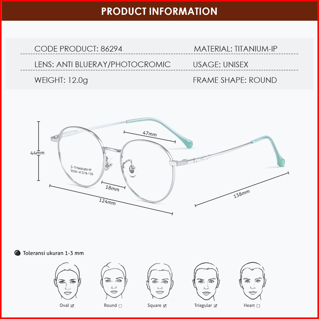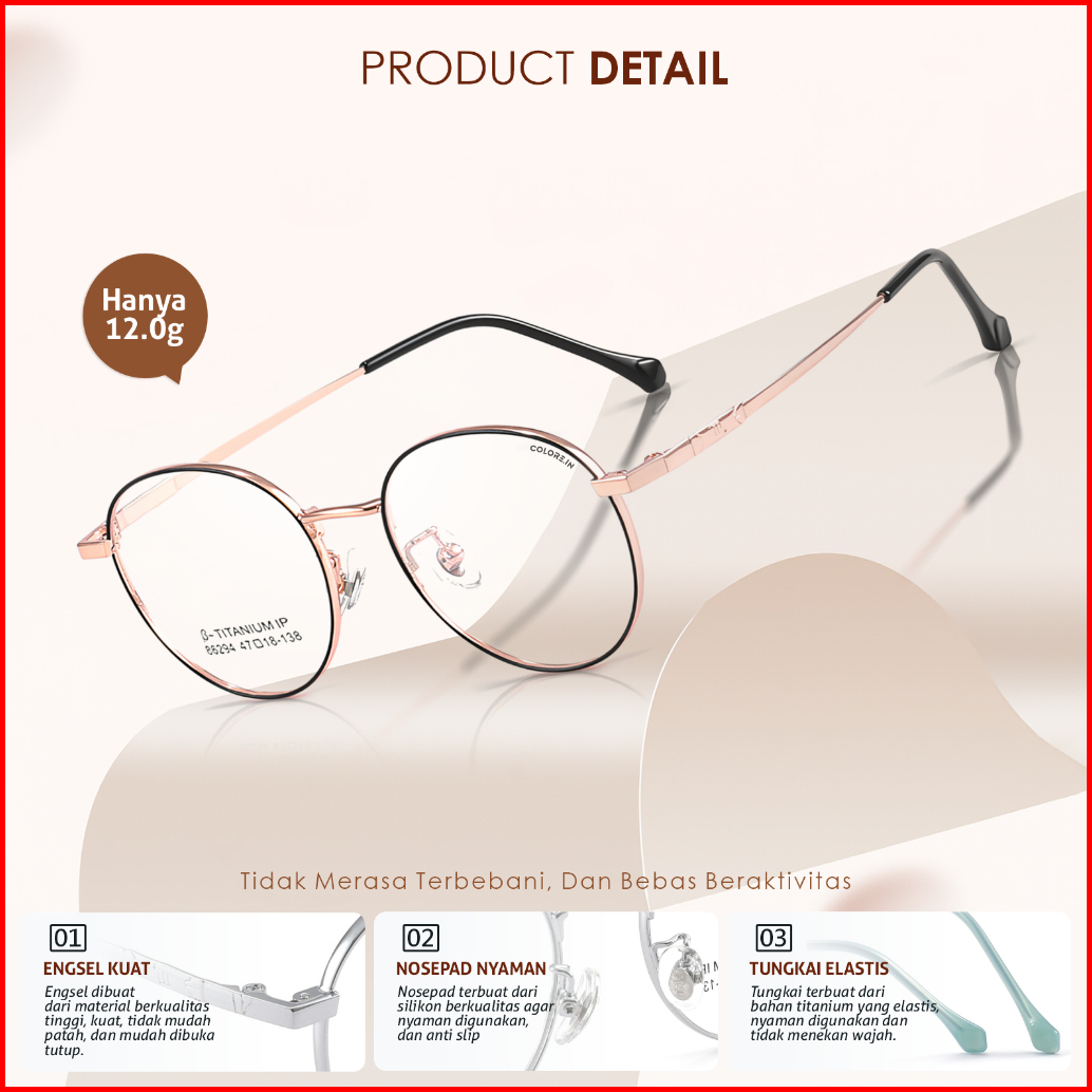 Colore.in Kacamata Titanium Photocromic Minus Anti Blueray Wanita Pria Frame Bulat Uv400 86294-86248