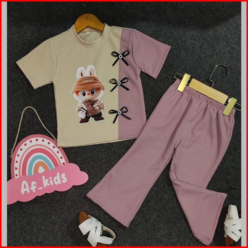 Oneset Baju Anak Perempuan Gambar Lucu Viral Celana Cutbray 1-10 Tahun