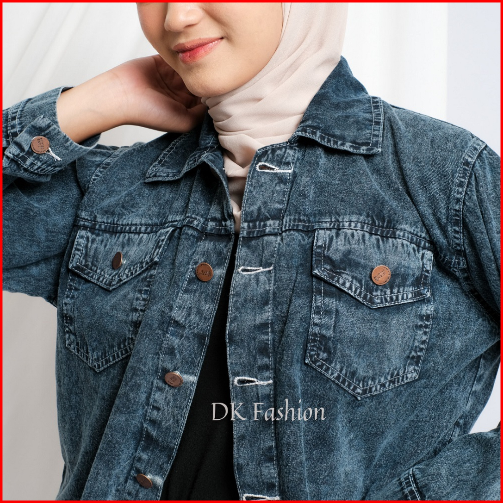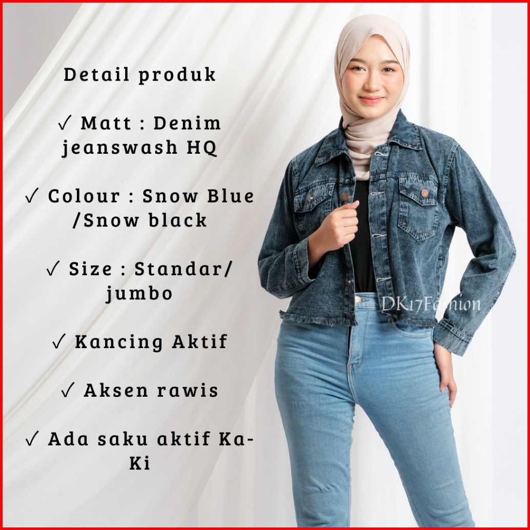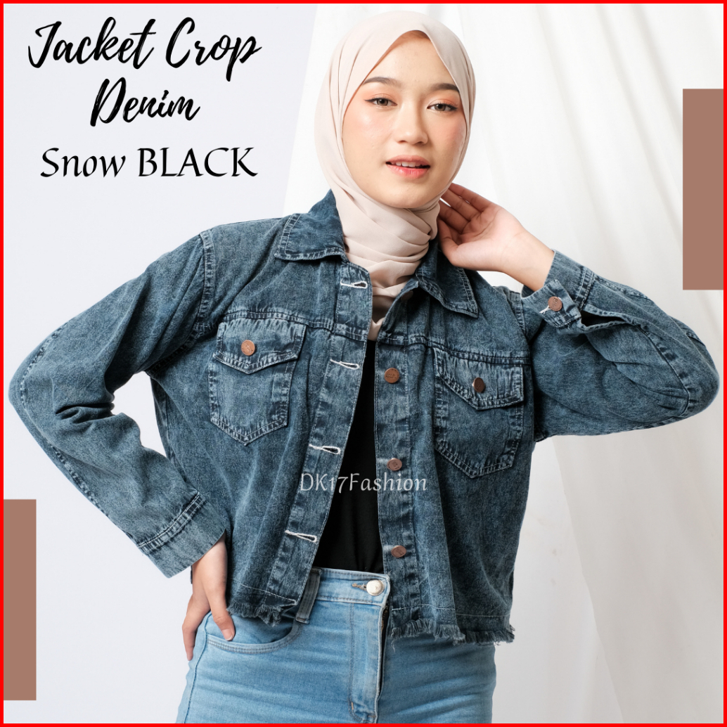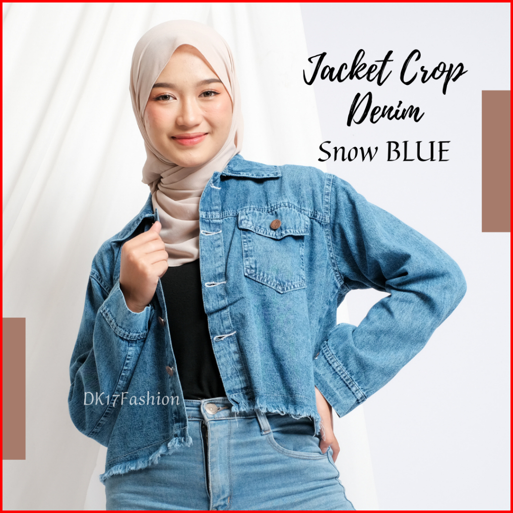 Jaket Jeans Wanita Reguler Fit Vintage Crop Top Rawis Outfit Kasual Remaja Perempuan