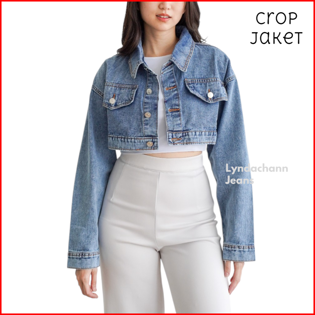 Lyndachann - Crop Jaket Premium Jeans Wanita