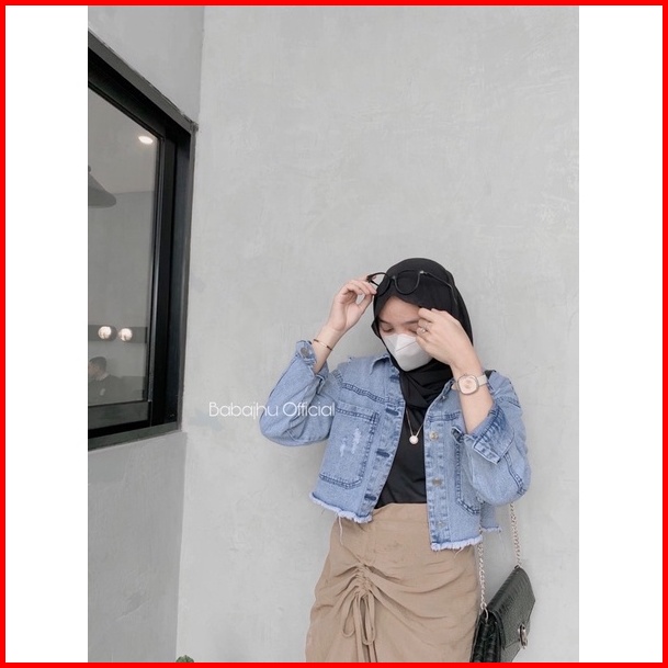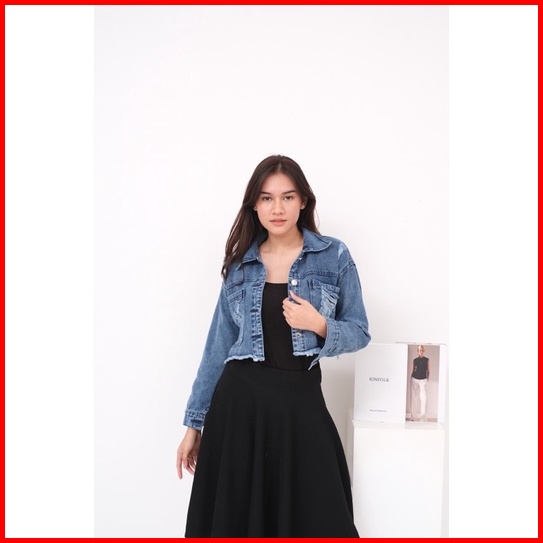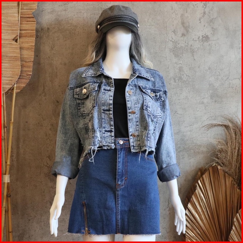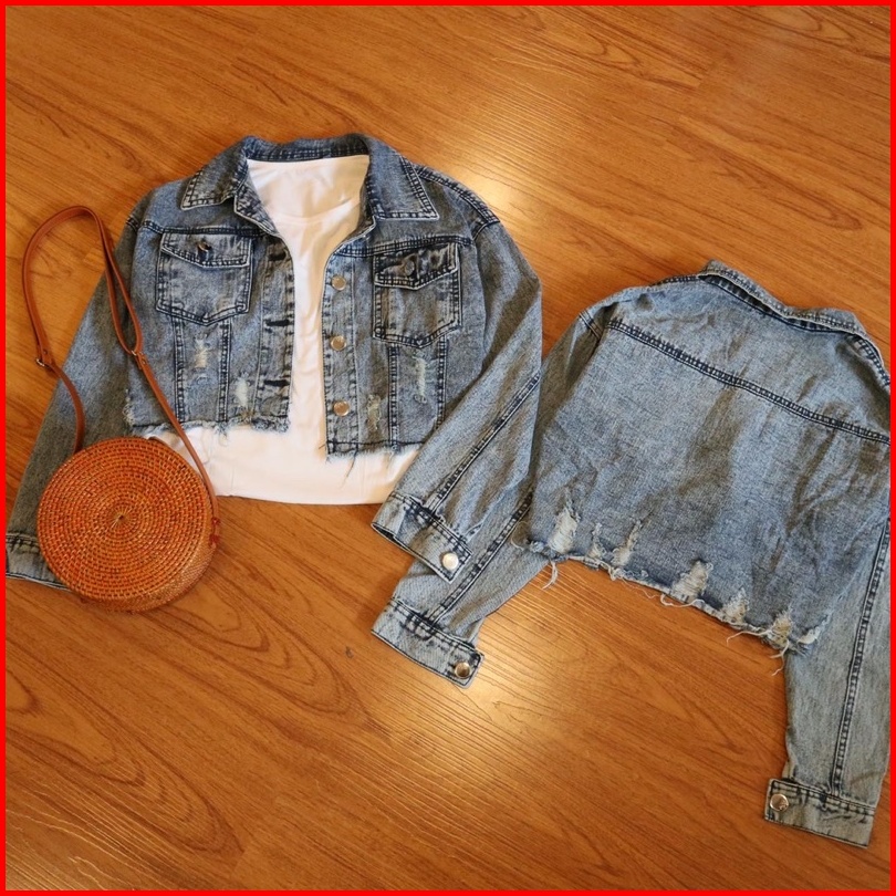 Ripped Jacket Jeans Crop - Jaket Jeans Jaket Crop Jeans Wanita Robek Destroy Jacket