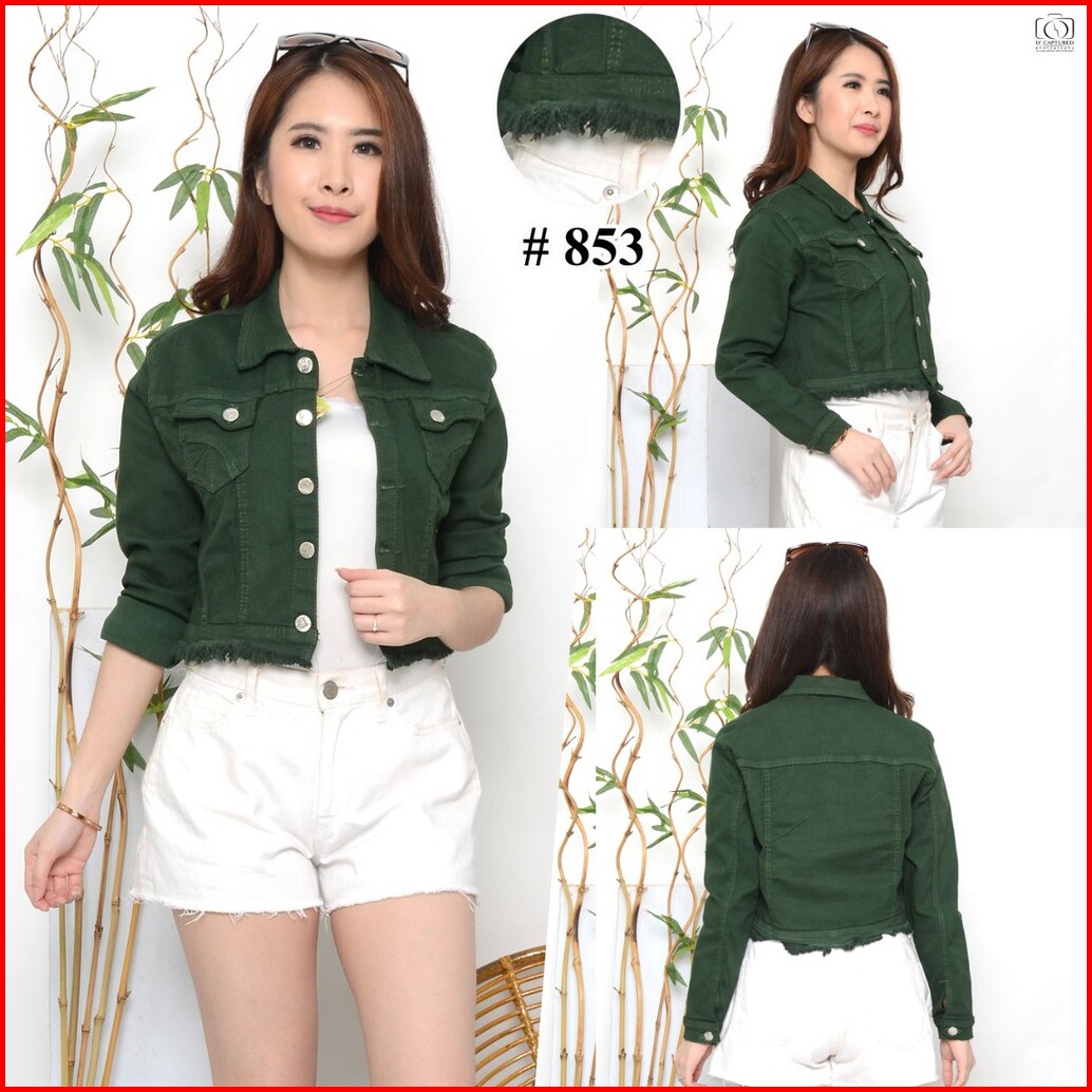 Mc Girl Jaket Jeans Crop Rawis Warna Hijau Jaket Body Pendek Hijau Tua
